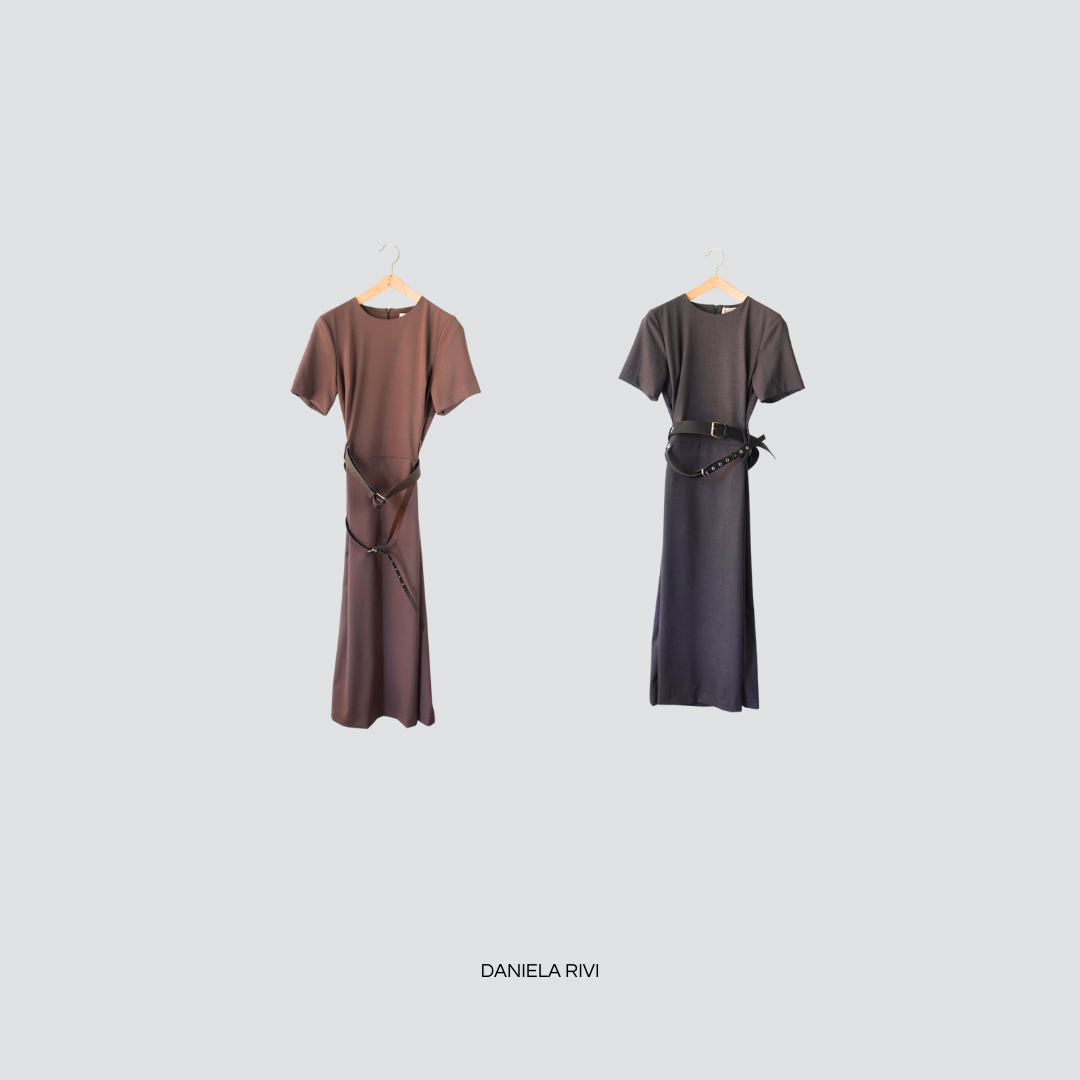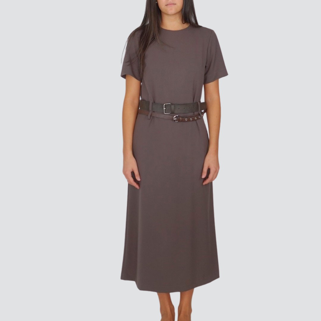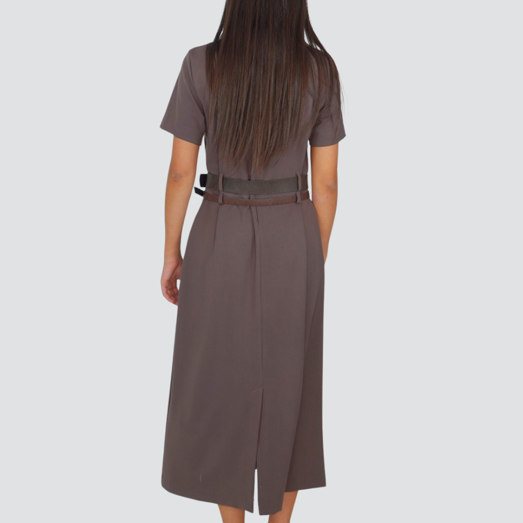 Dixie abito lungo manica corta spacchetto retro e tasche con cintura 33% viscosa Art AMDQKHZC