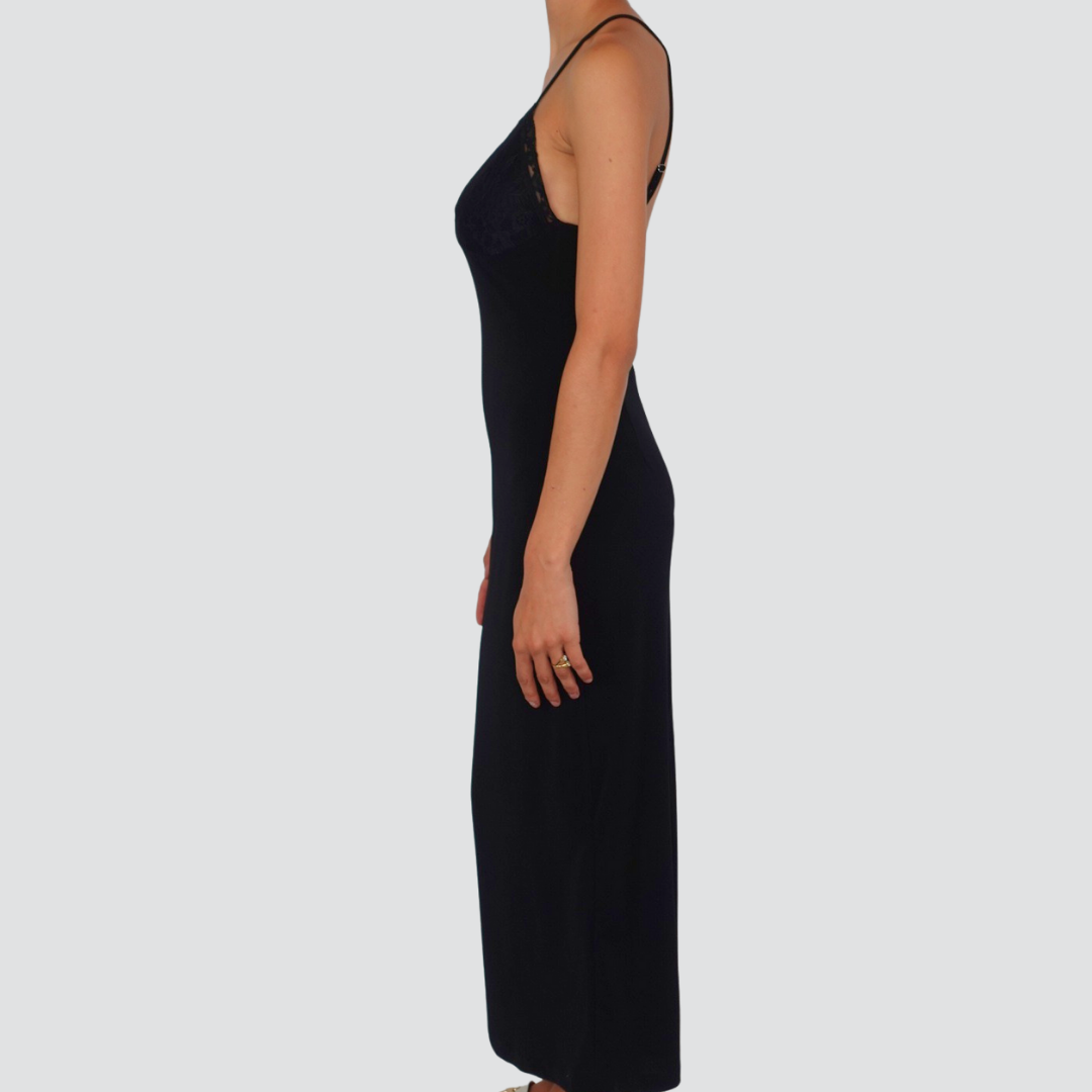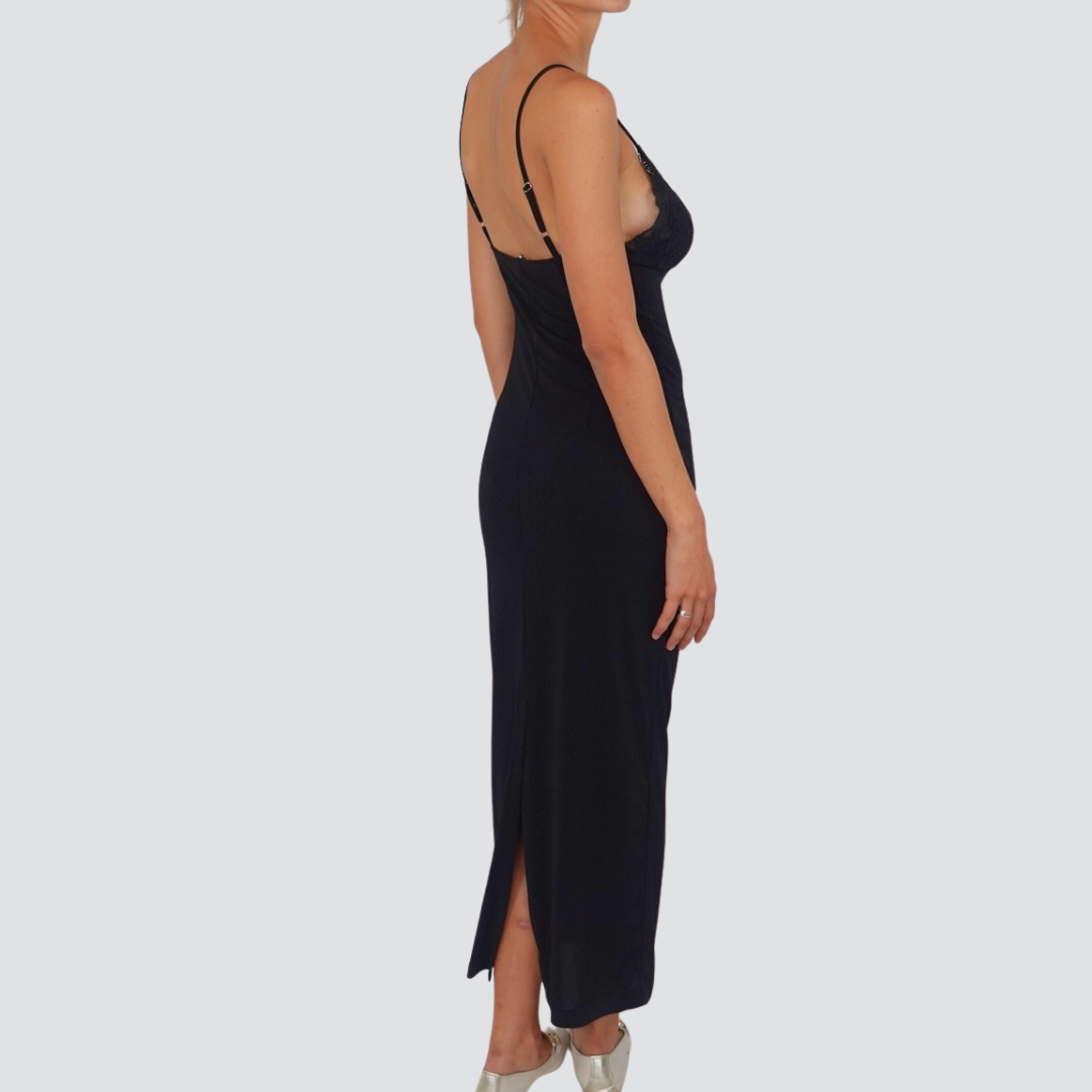 Haveone abito lungo aderente coppe pizzo spacchetto retro Art AVS-P025