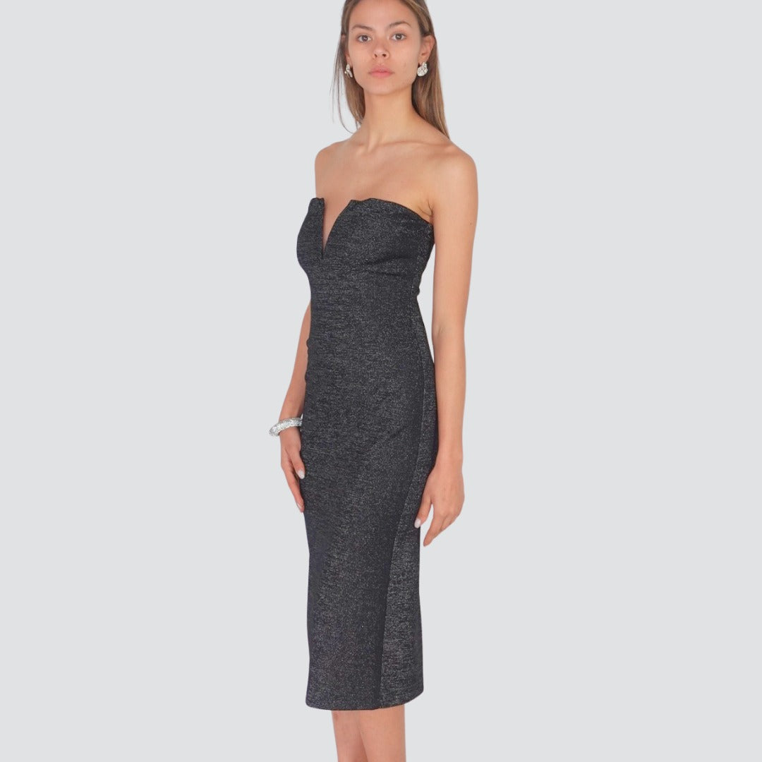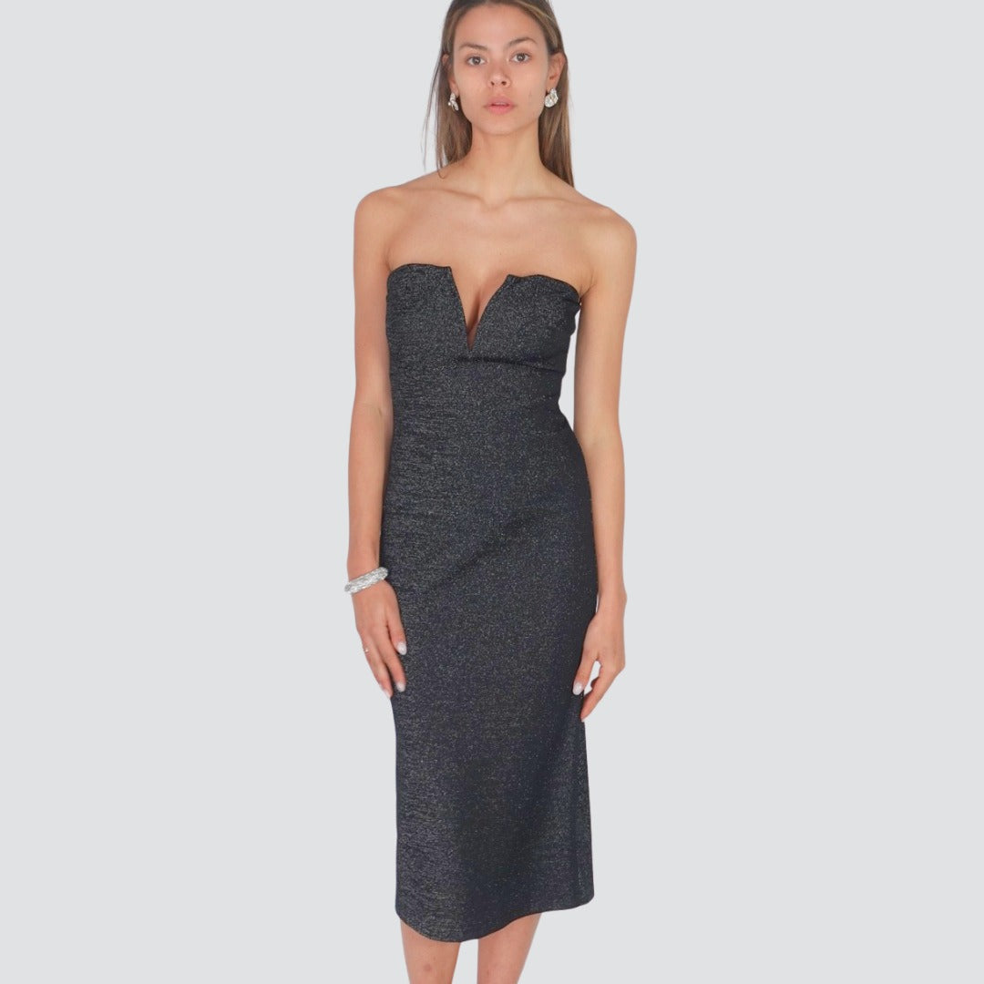 Haveone abito lurex midi scollo V spacco retro Art AMA-P075