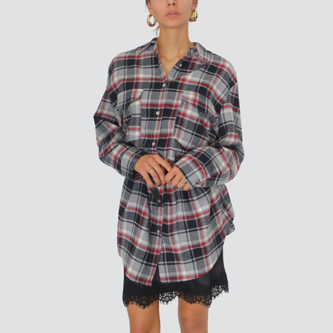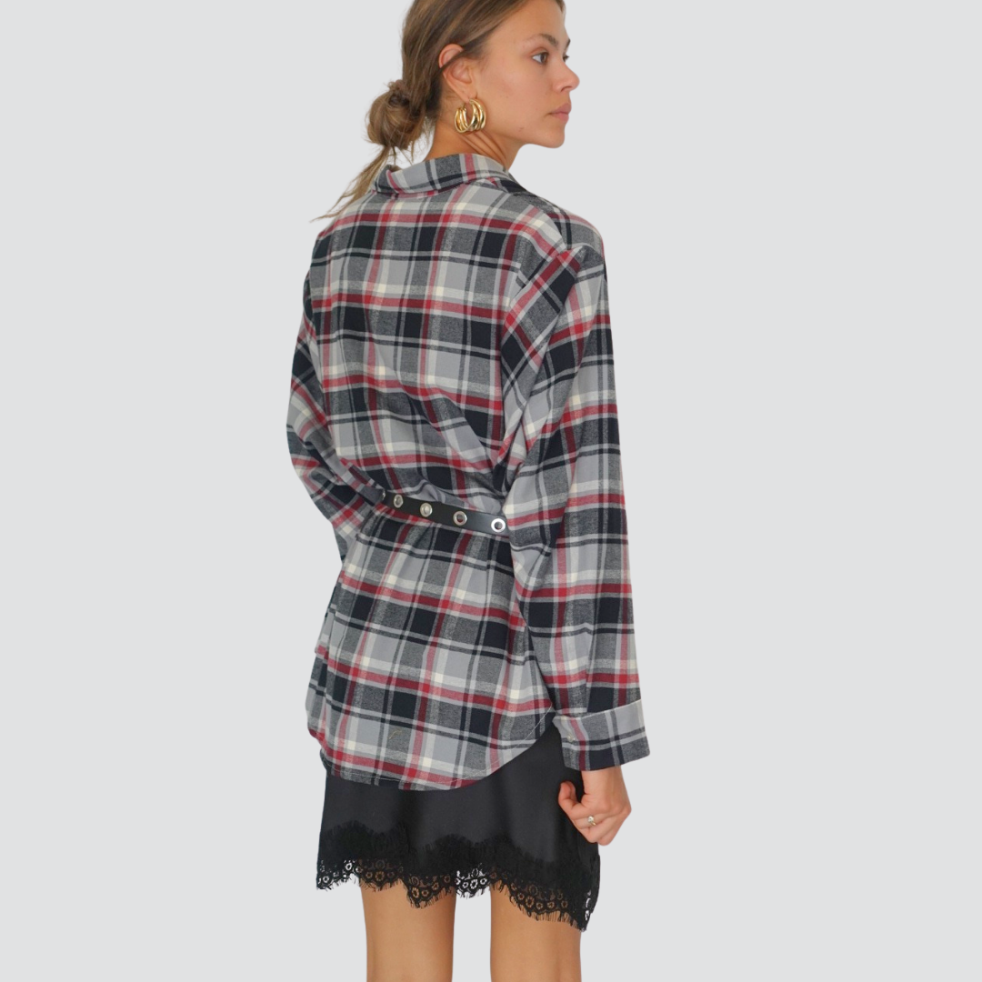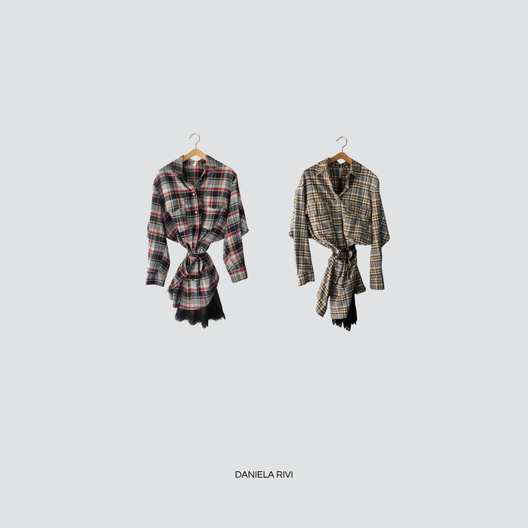 Tensione in abito chemisier flanella con cintura e sottoveste satin fondo pizzo Art FW250077C