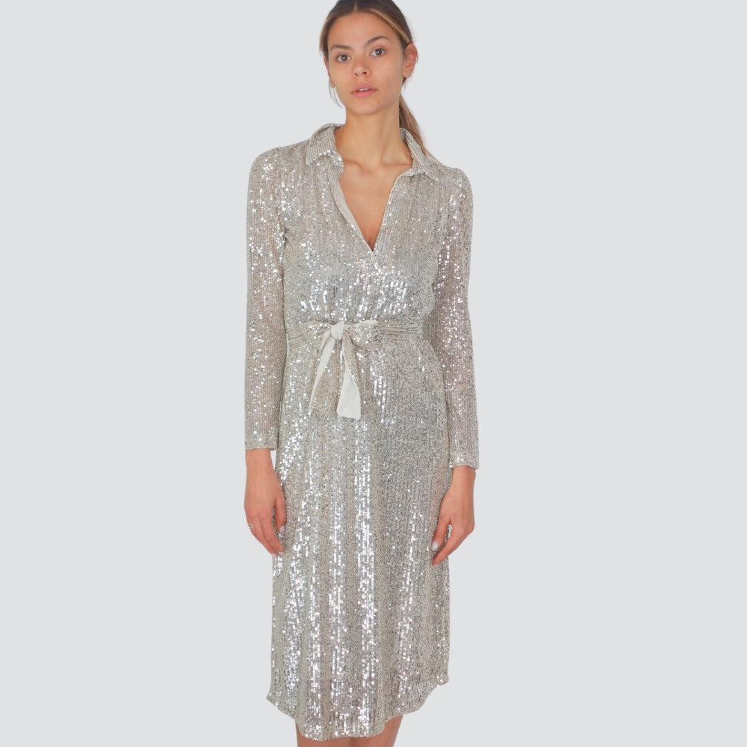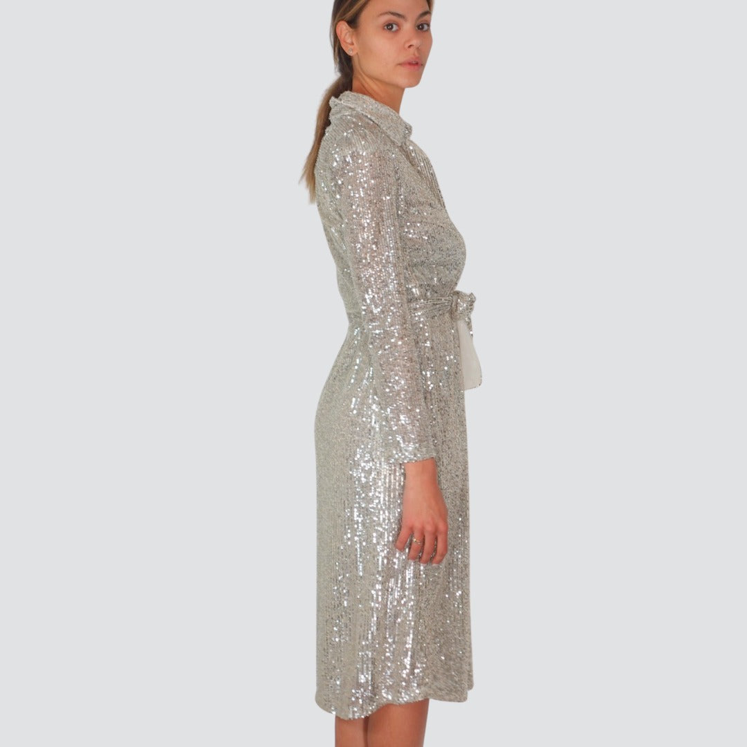 Tensione in abito chemisier micro paillettes con cintura Art WA530