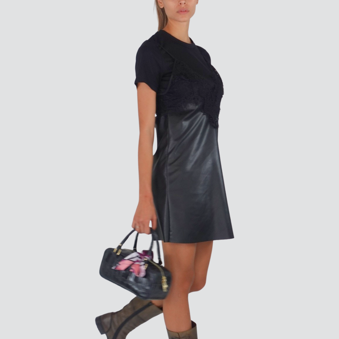 Tensione in abito eco-pelle con pizzo e t-shirt Art 37653