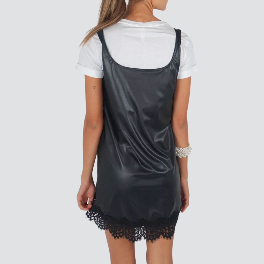 Tensione in abito ecopelle con pizzo fondo e t-shirt Art W25X612