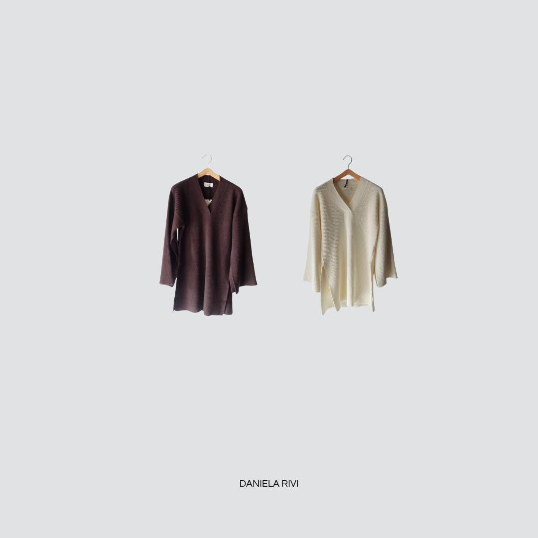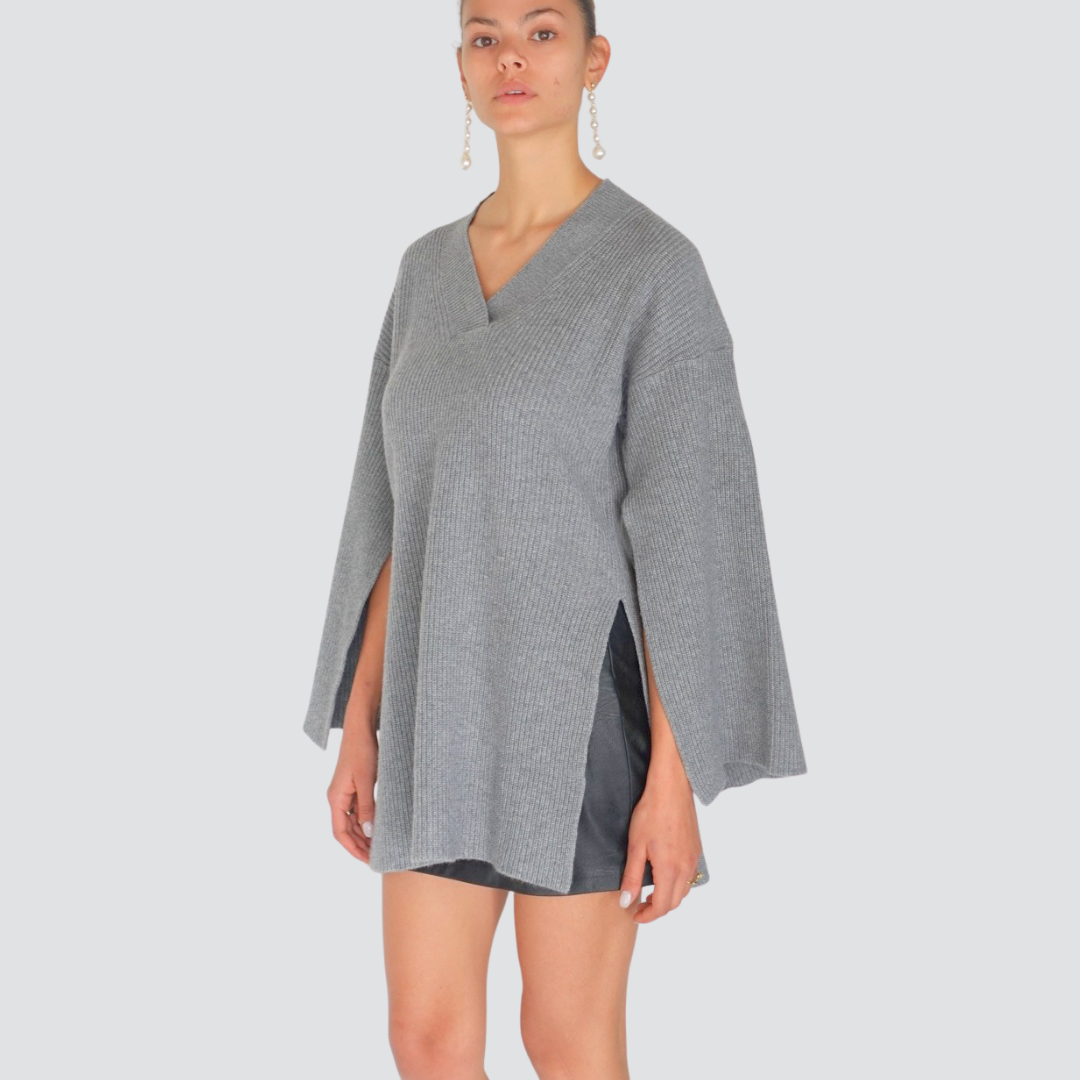 Vicolo mini abito scollo V manica aperta spacchi laterali 40% viscosa 25% lana 5% casmere Art 77334F