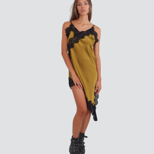 Vicolo abito satin con pizzo fondo asimmetrico 97% viscosa Art TF1087