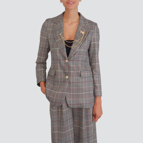 Tensione in giacca scozzese sfiancata con spilla bottone oro 34% viscosa Art 26B1129