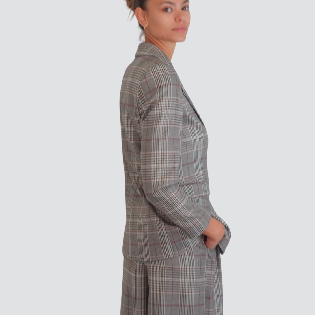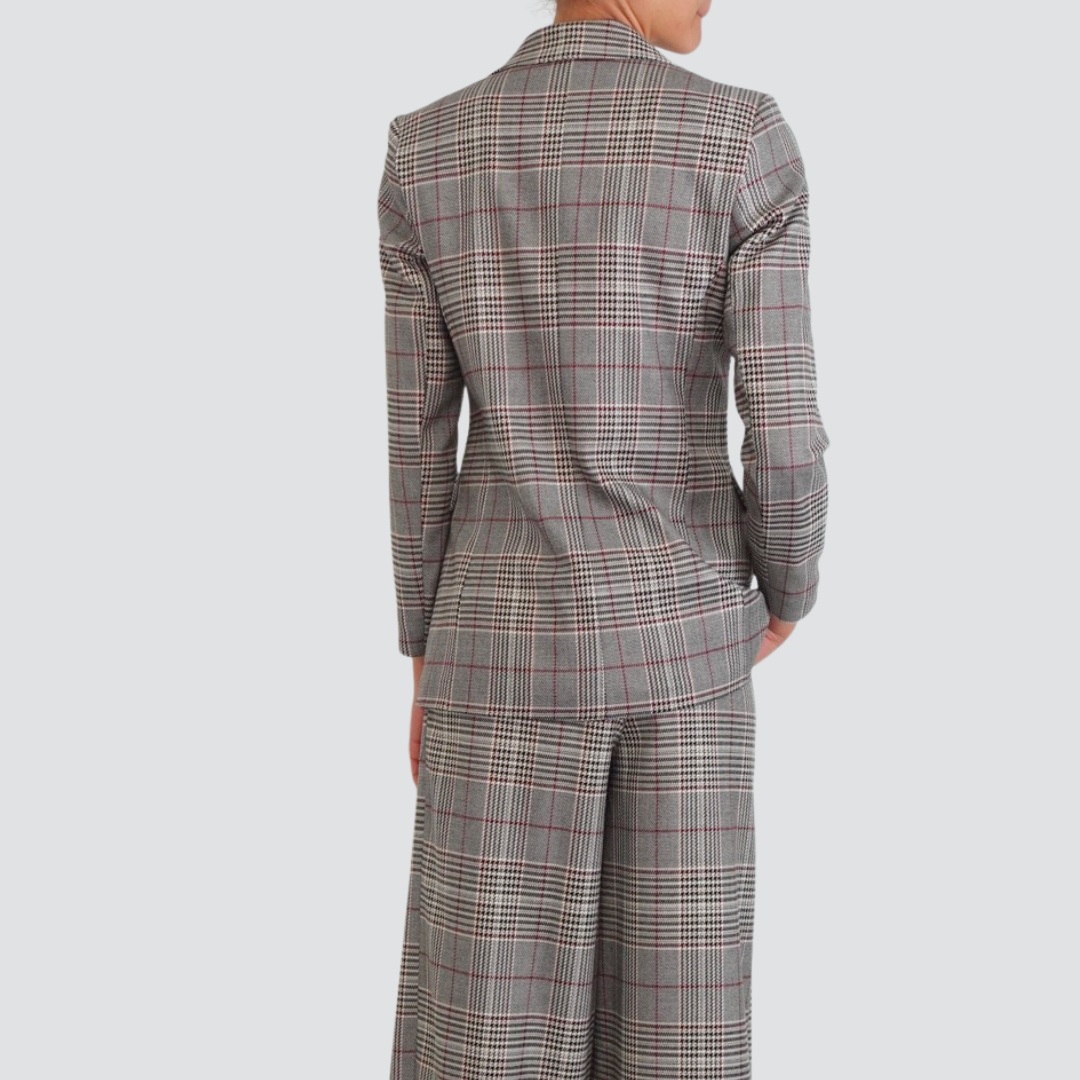 Tensione in giacca scozzese sfiancata con spilla bottone oro 34% viscosa Art 26B1129