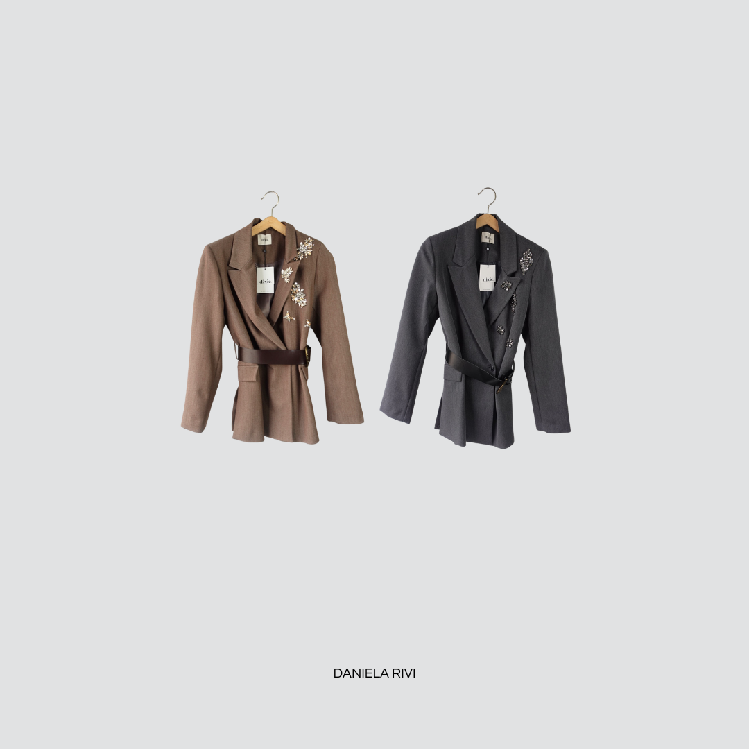 Dixie giacca doppio petto foderata con cintura e strass Art J845Y043 (Pantalone Art P845Y088)