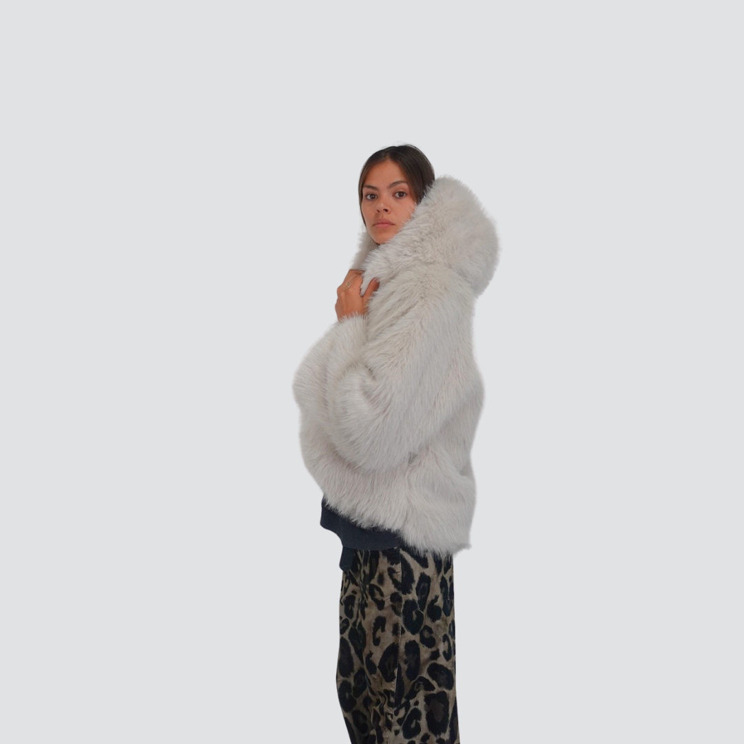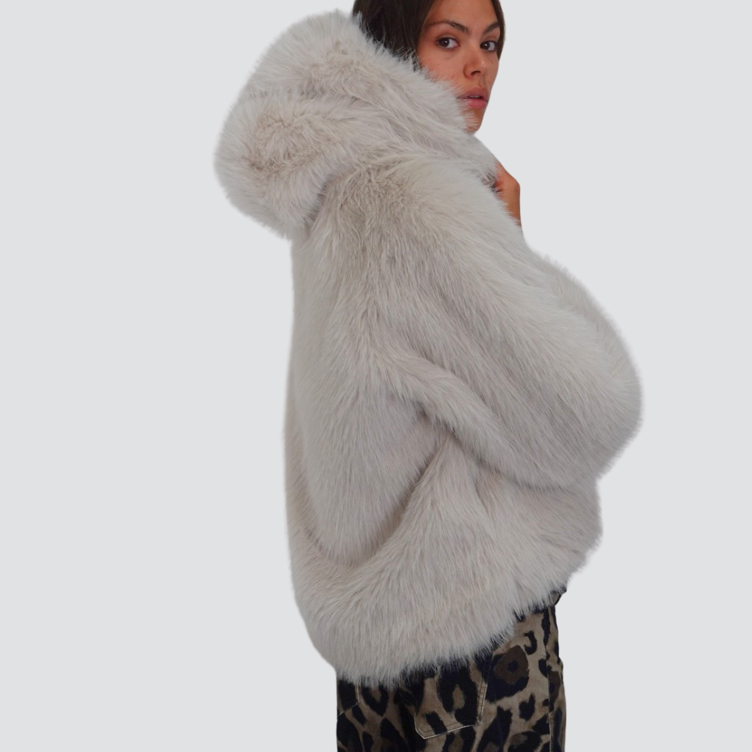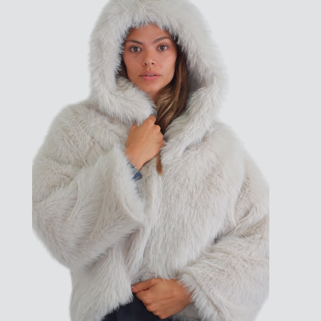 Haveone eco-pelliccia corta con cappuccio foderata ArtKMA-P044