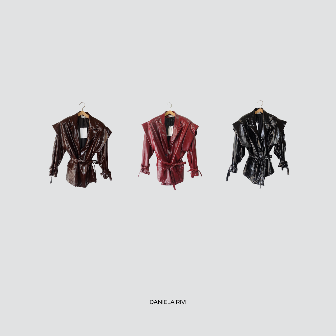 Haveone giacca over vernice con aletta foderata con cintura Art JVS-P038