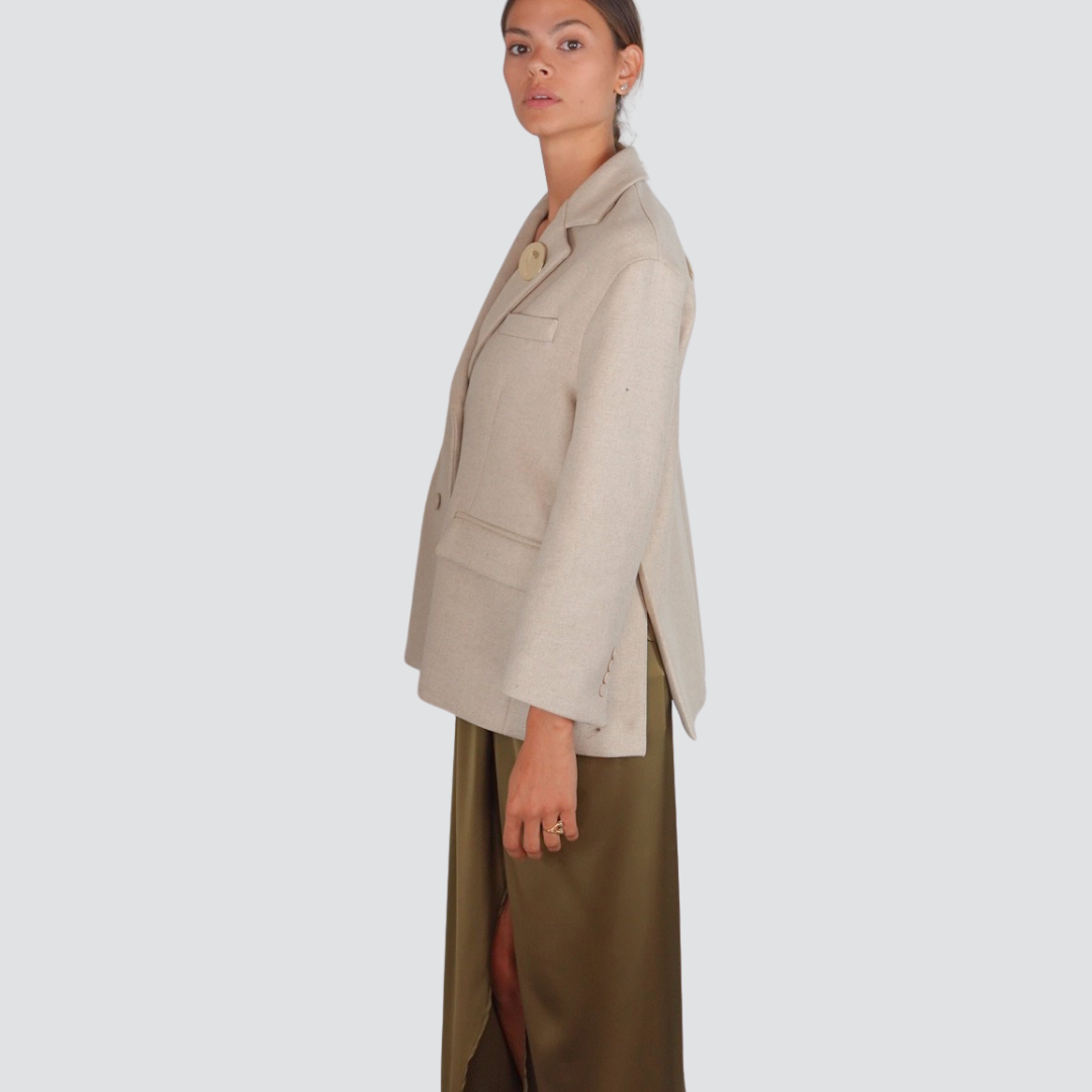 Tensione in giacca over foderata spacchi laterali e spilla 60% lana Art W25J004