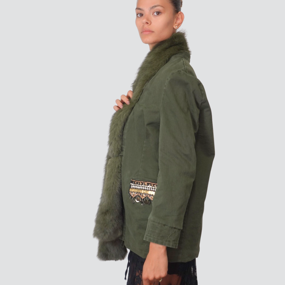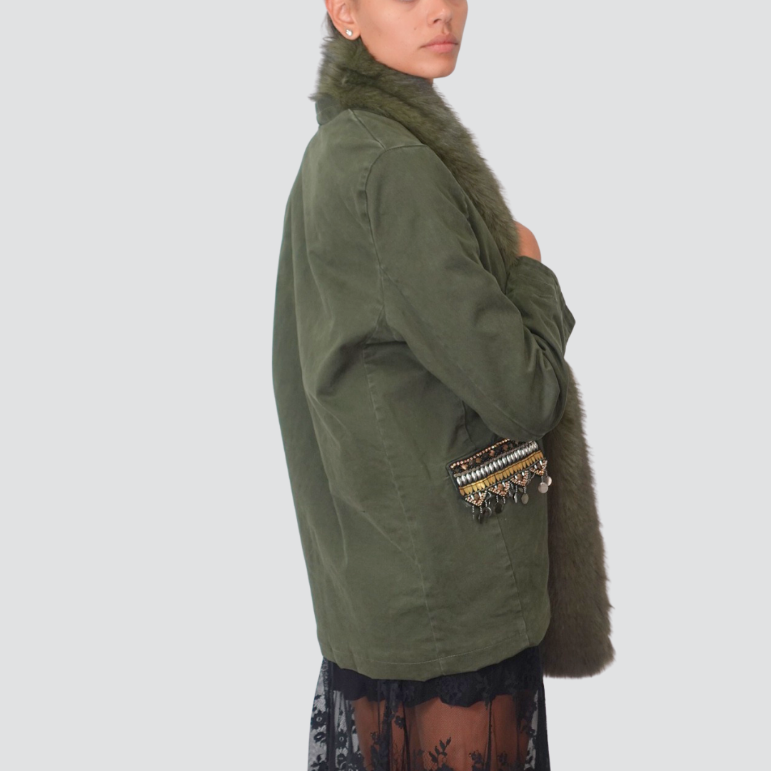 Tensione in giacca over interno trapuntato collo eco-pelliccia staccabile dettaglio tasca Art W25J479
