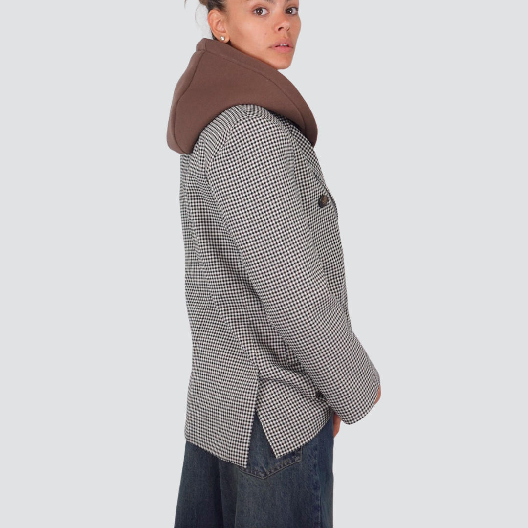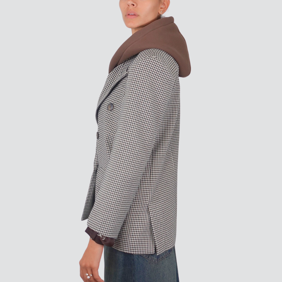 Tensione in giacca pied de poule foderata con strass e cappuccio felpa staccabile 50% cotone Art 37615