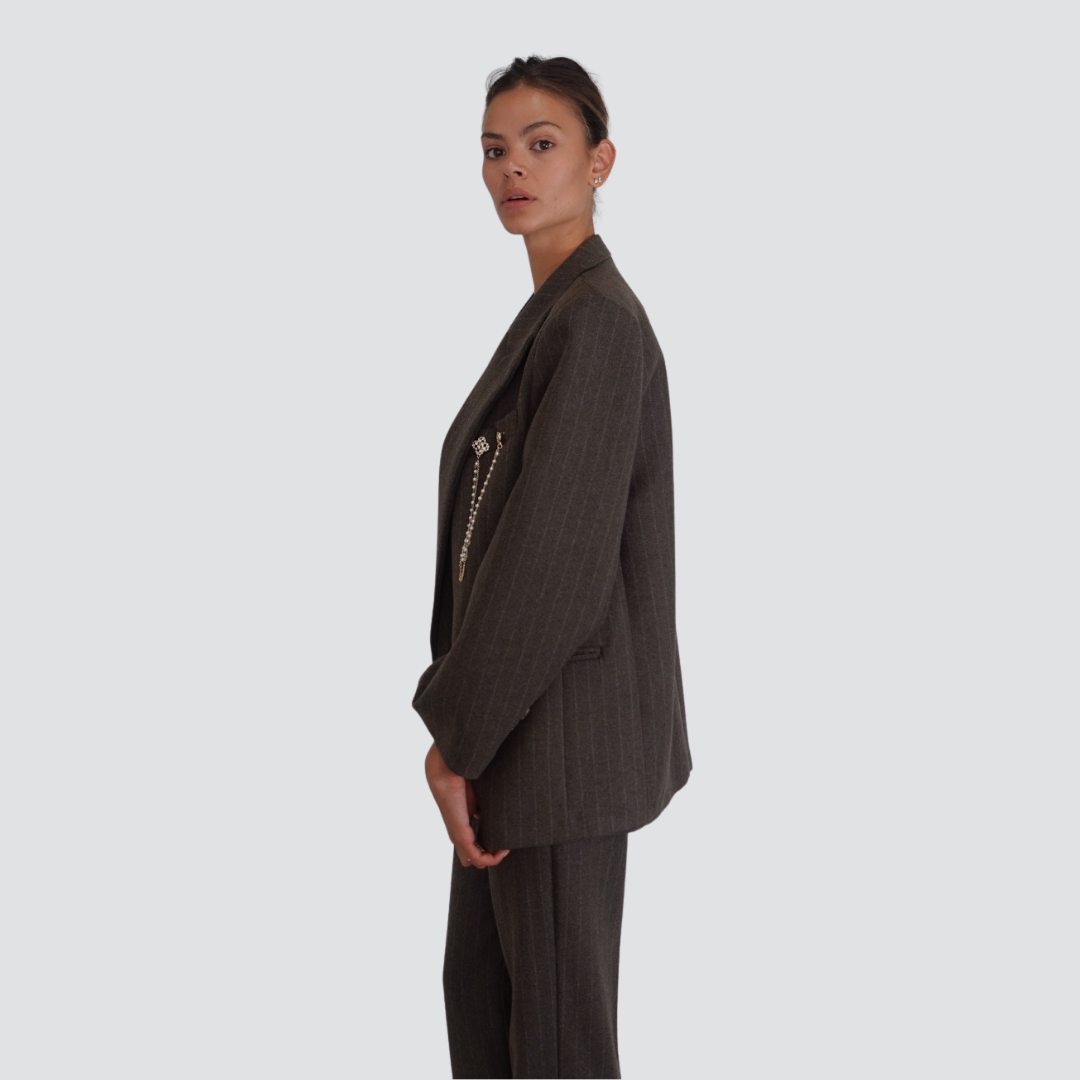 Vicolo giacca doppio petto gessata con spilla foderata 34% viscosa Art TF0110