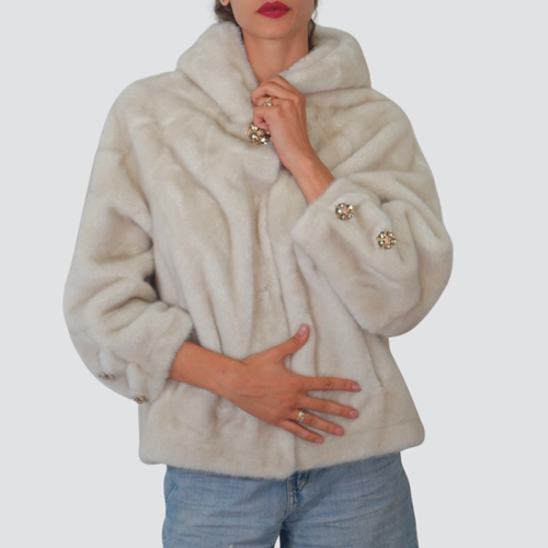Susy Mix eco-pelliccia cappuccio foderata bottoni gioiello Art SUSY0531