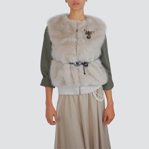 Tensione in gilet eco-pelliccia foderata con spilla Art W25J533