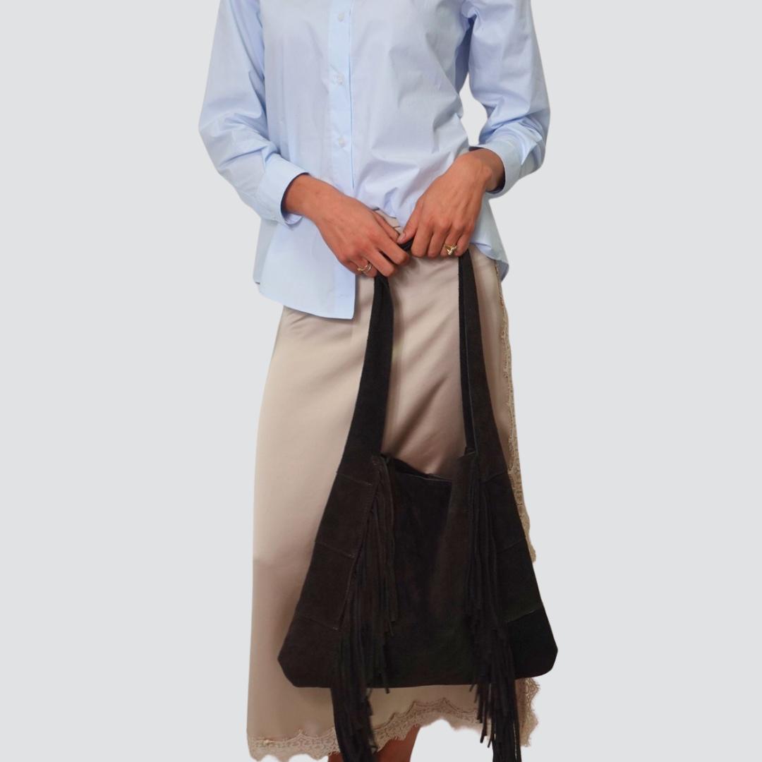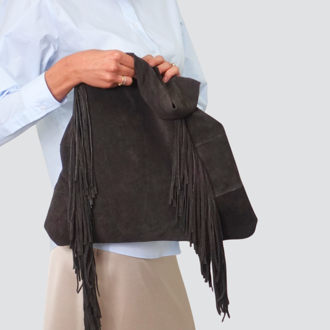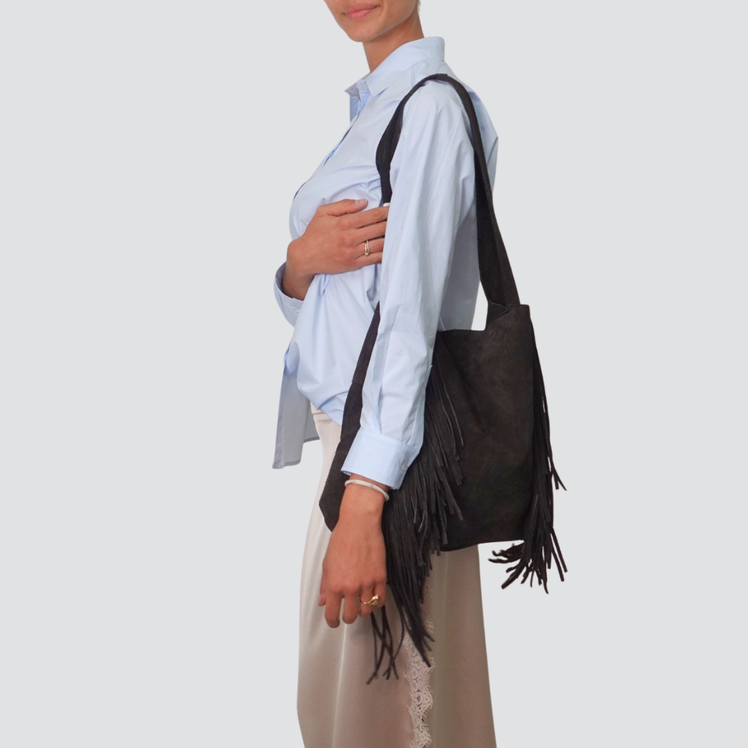 Susy Mix sacca camoscio frangia vera pelle Art JEROMESU