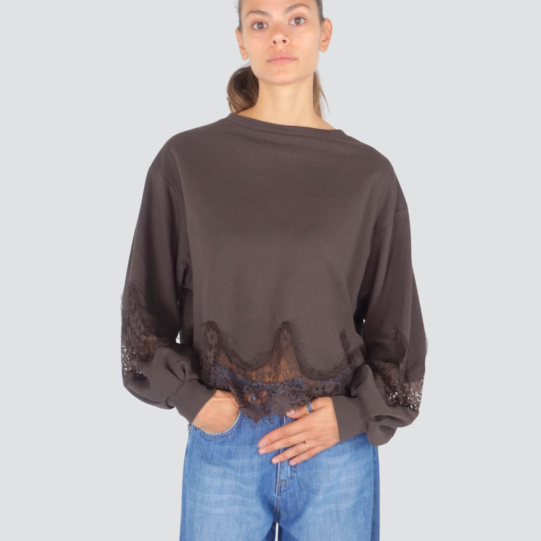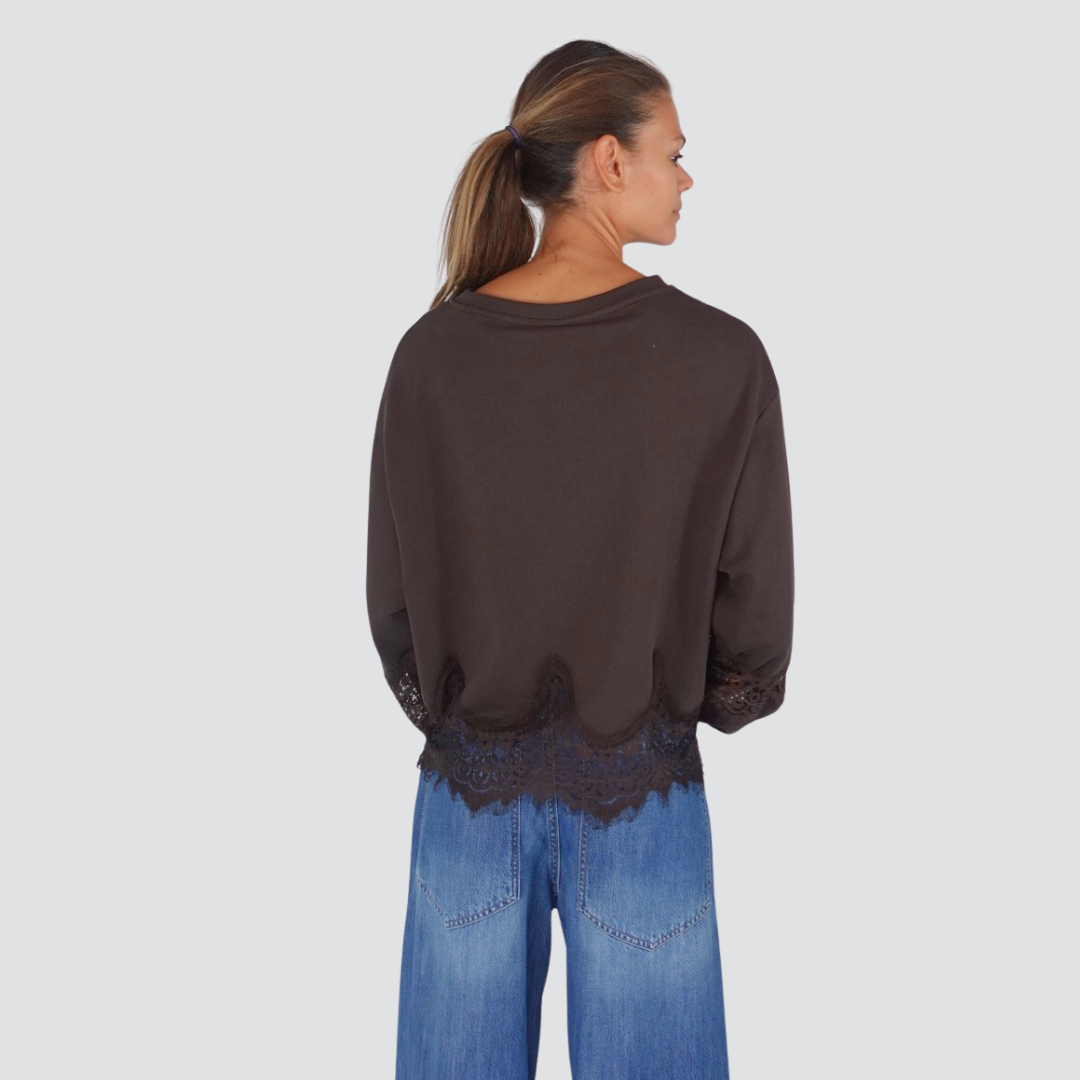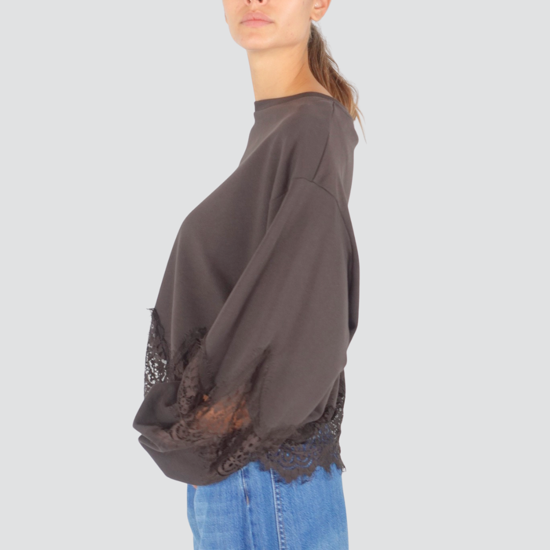 Tensione in felpa over garzata inserti pizzo 100% cotone Art 37683