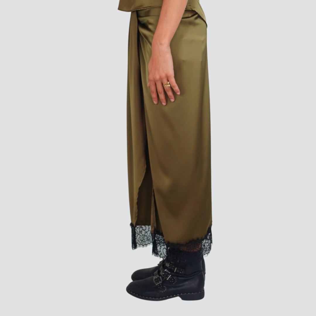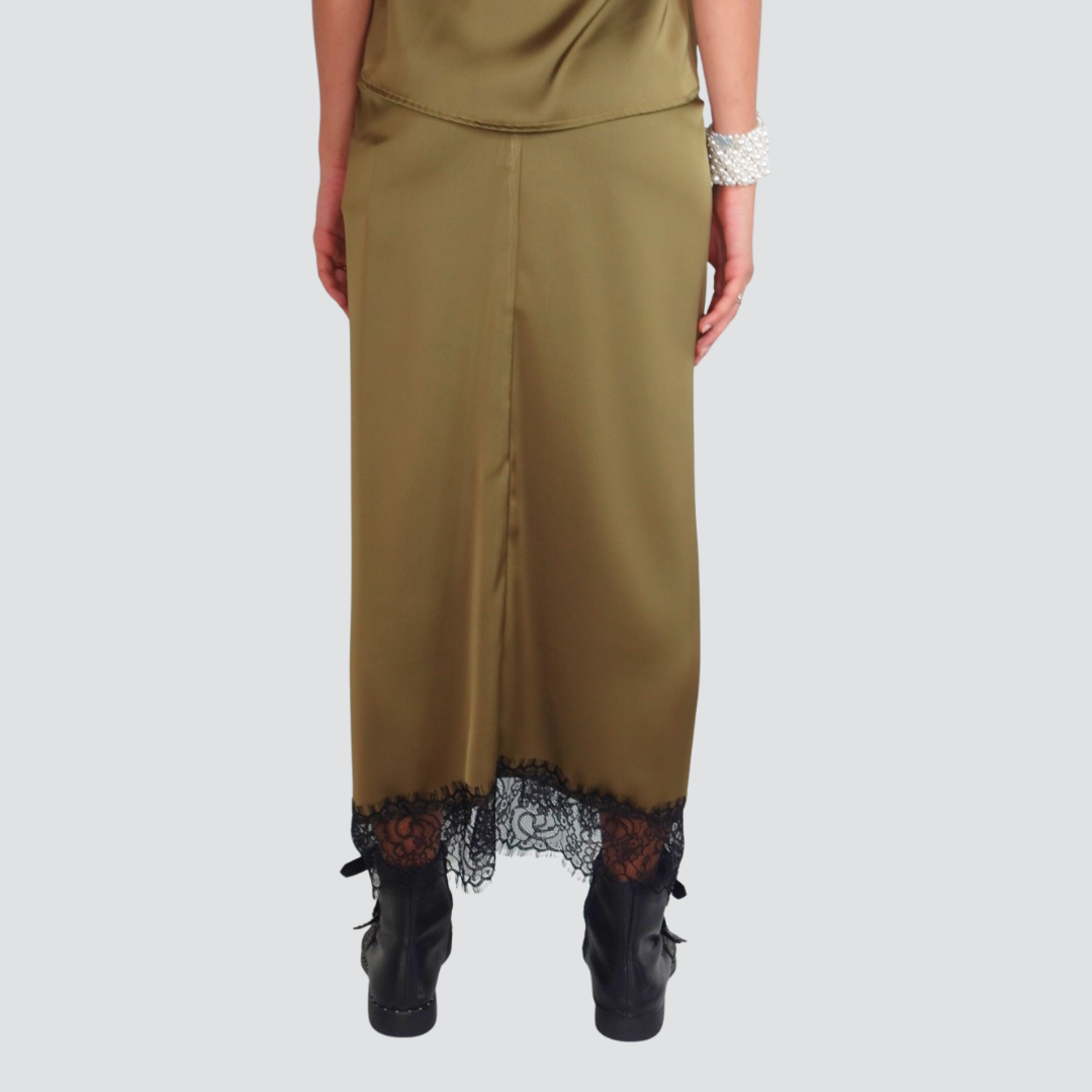 Tensione in gonna satin nodo fondo pizzo con spacco Art FW250028