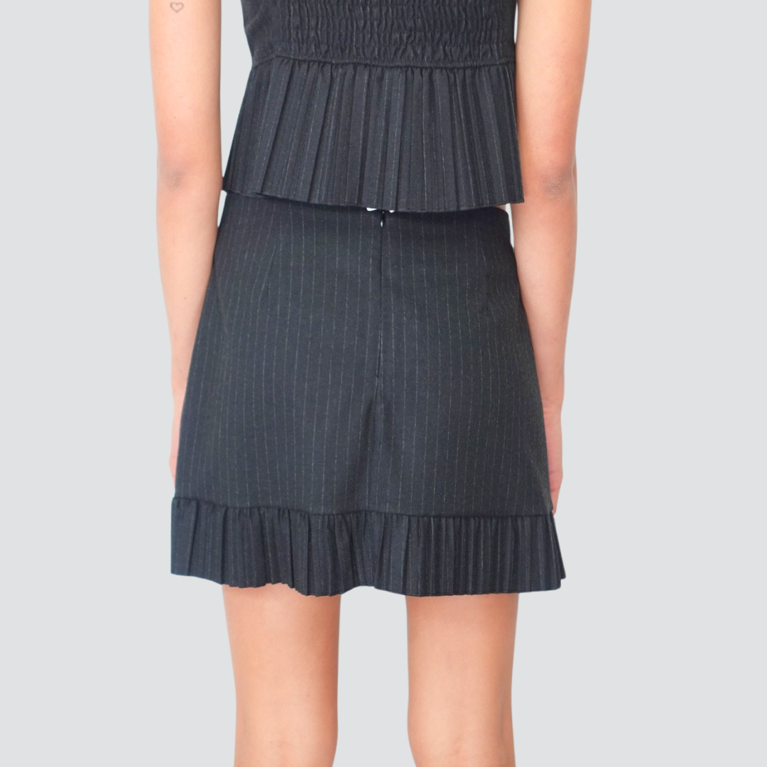 Tensione in mini gonna grigia gessata fondo plissettato Art FW250054