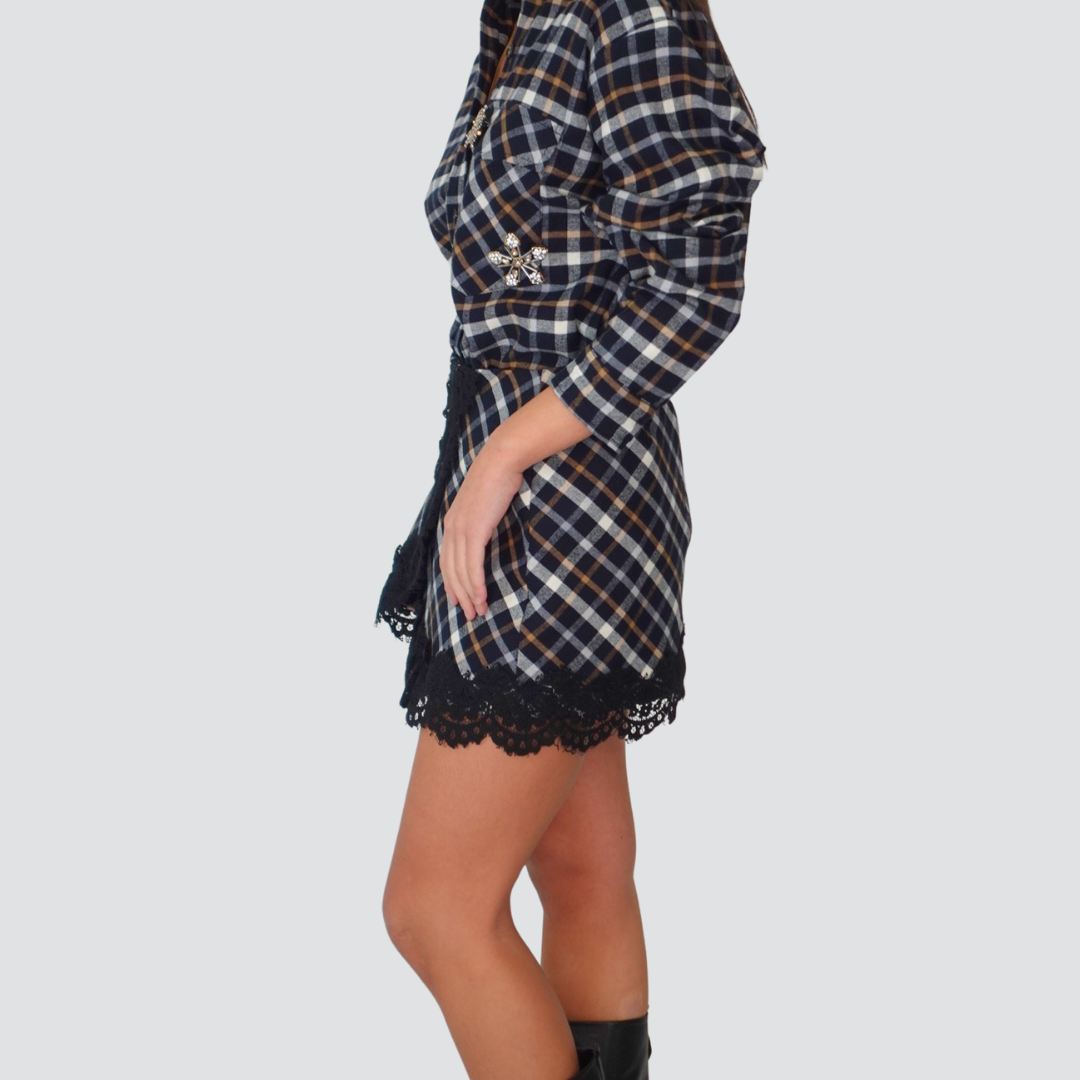 Tensione in mini gonna scozzese con pizzo 100% cotone Art W25G722