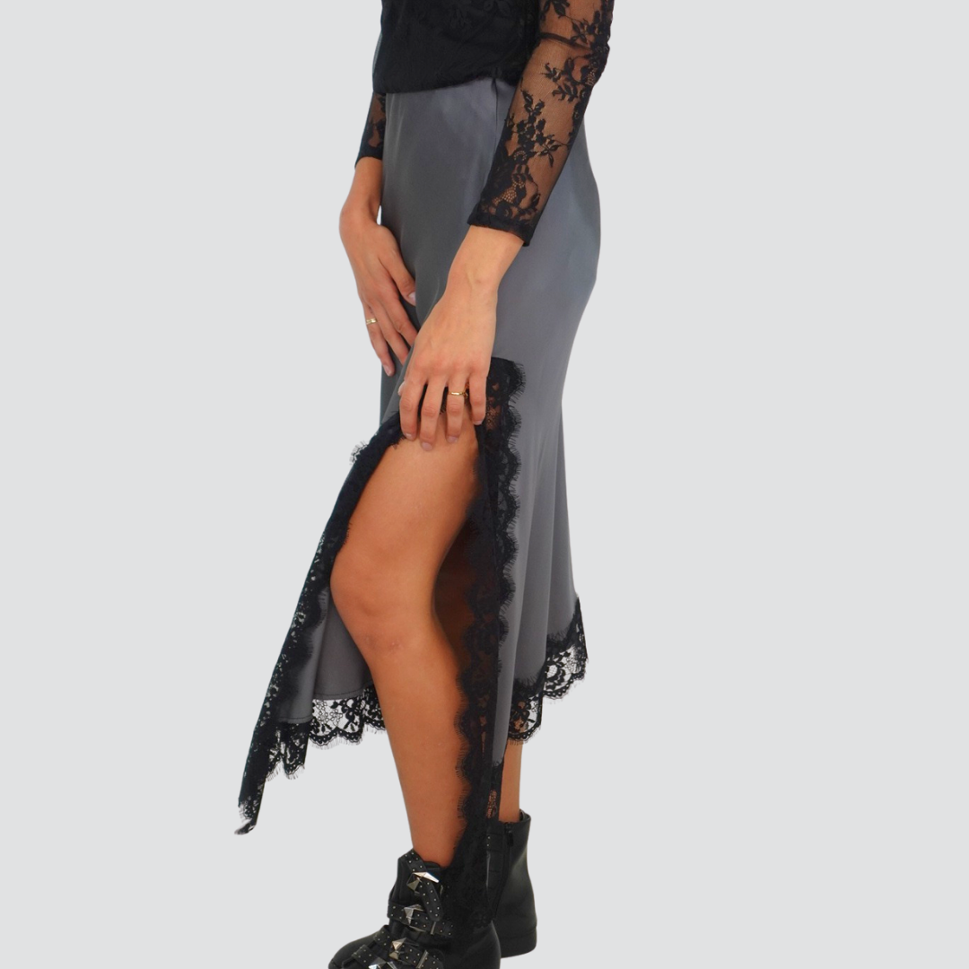 Vicolo gonna satin asimmetrica spacco laterale con pizzo 100% viscosa Art TF0995