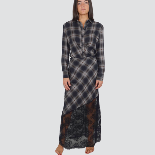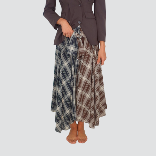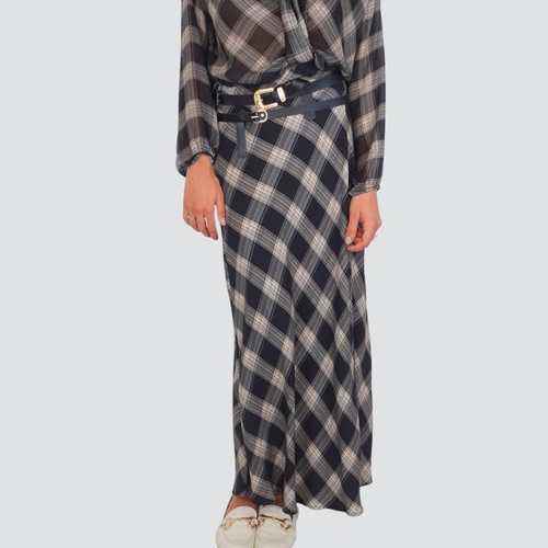 Haveone gonna lunga quadri con spacco laterale e doppia cintura 100% viscosa Art GMA-P066