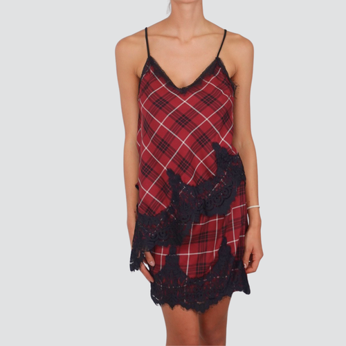 Tensione in mini gonna scozzese portafoglio con pizzo arrampicante 65% viscosa Art FW250056