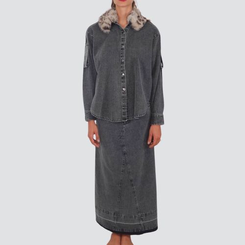 Tensione in gonna denim midi spacco retro con cintura 100% cotone Art W25G494