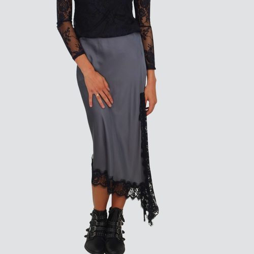 Vicolo gonna satin asimmetrica spacco laterale con pizzo 100% viscosa Art TF0995