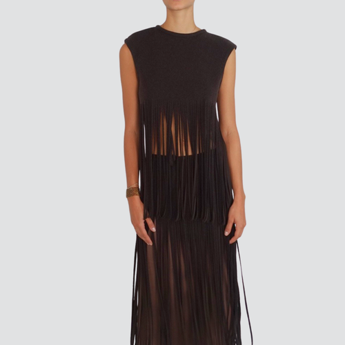 Tensione in gonna lana frange sottoveste satin spacco laterale Art W25G084