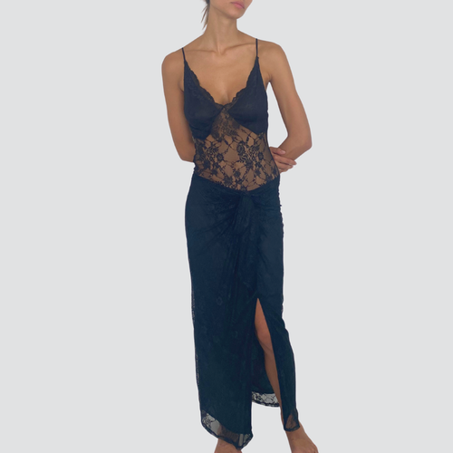 Haveone gonna lunga pizzo trasparente spacco retro Art GVS-P026
