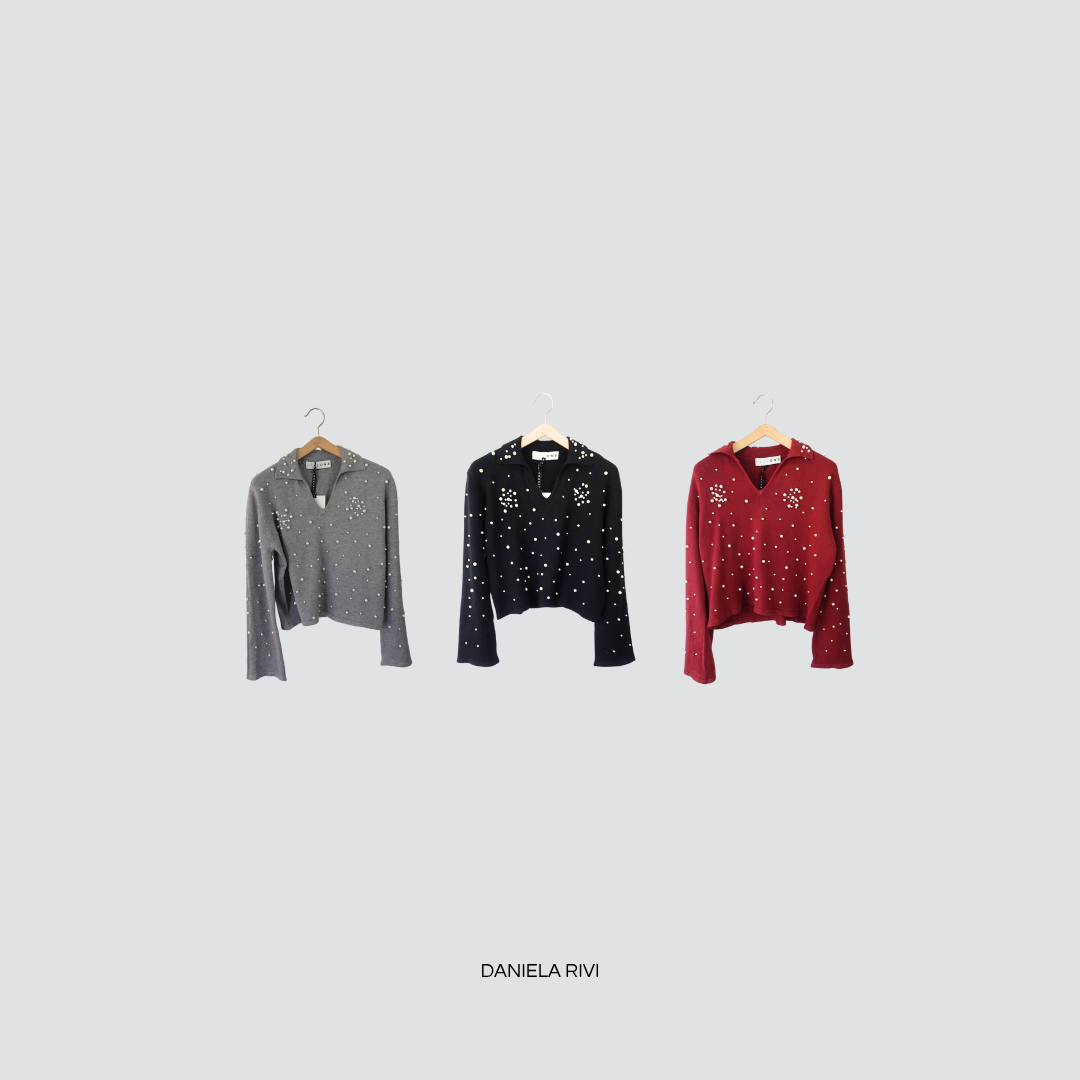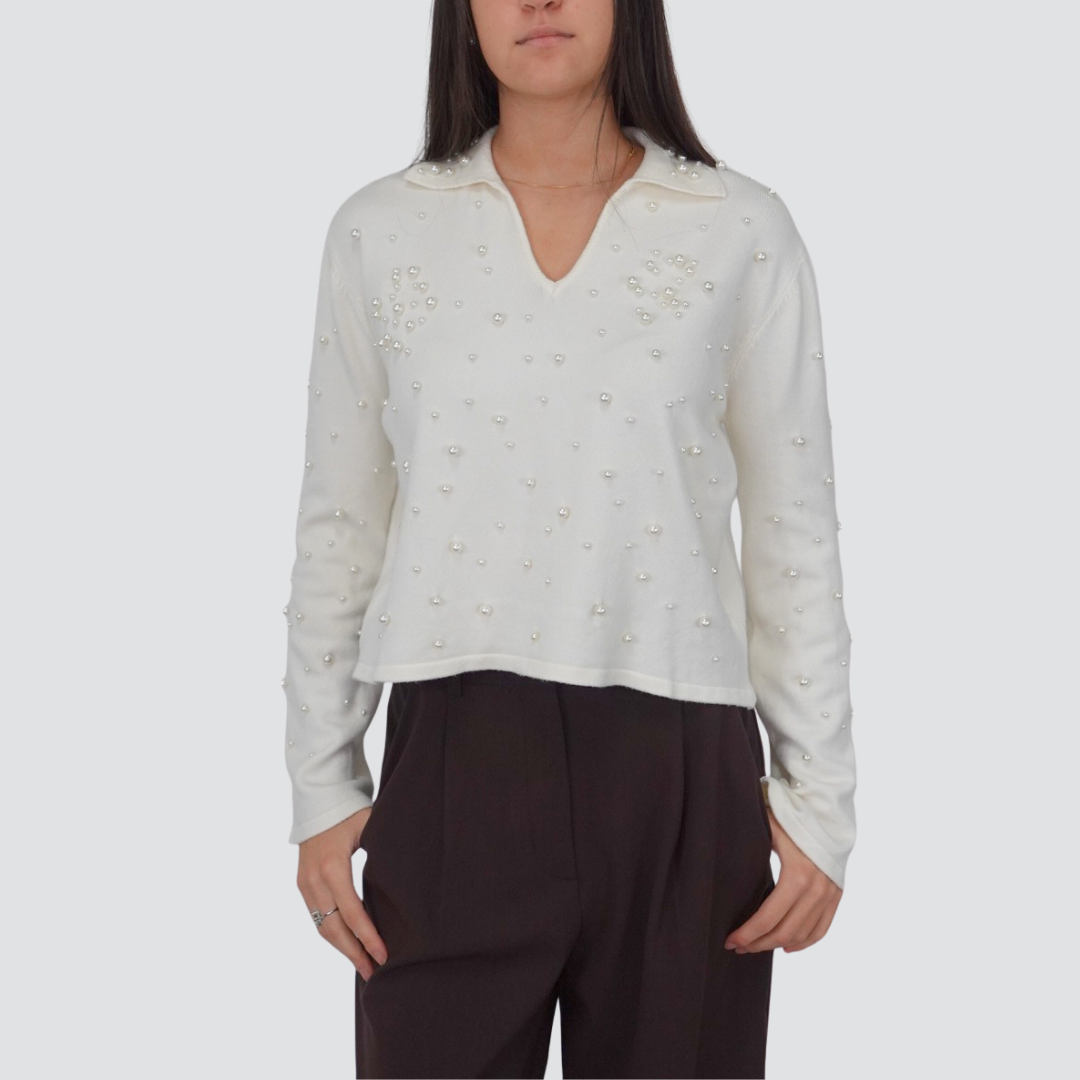 Haveone polo con perle 50% viscosa Art MNC-P054