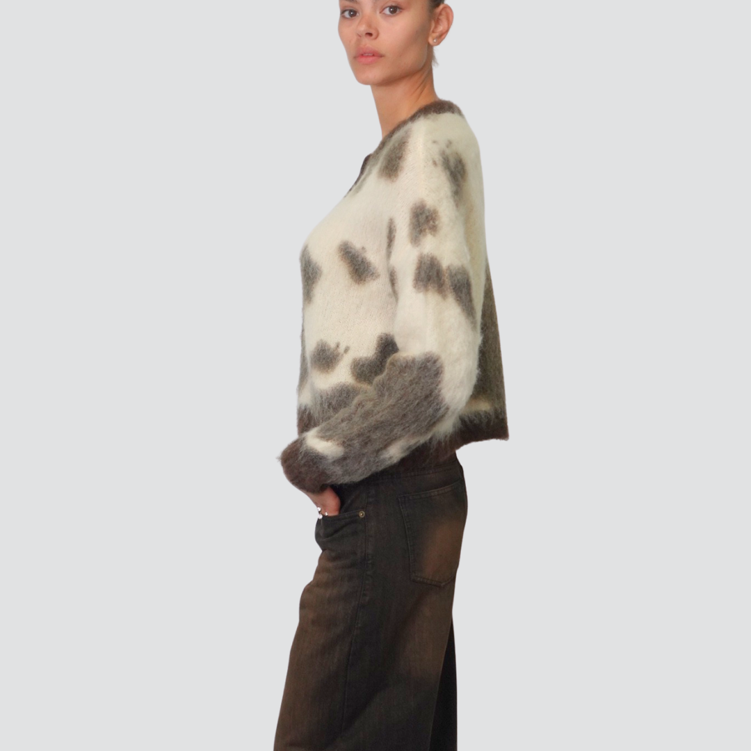 Philia Loft cardigan maculato bottoni gioiello lana mohair Art F01O0161