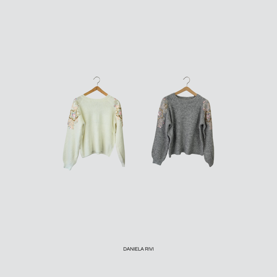 Philia Loft maglia ricamo paillettes e perle Art D01N0060