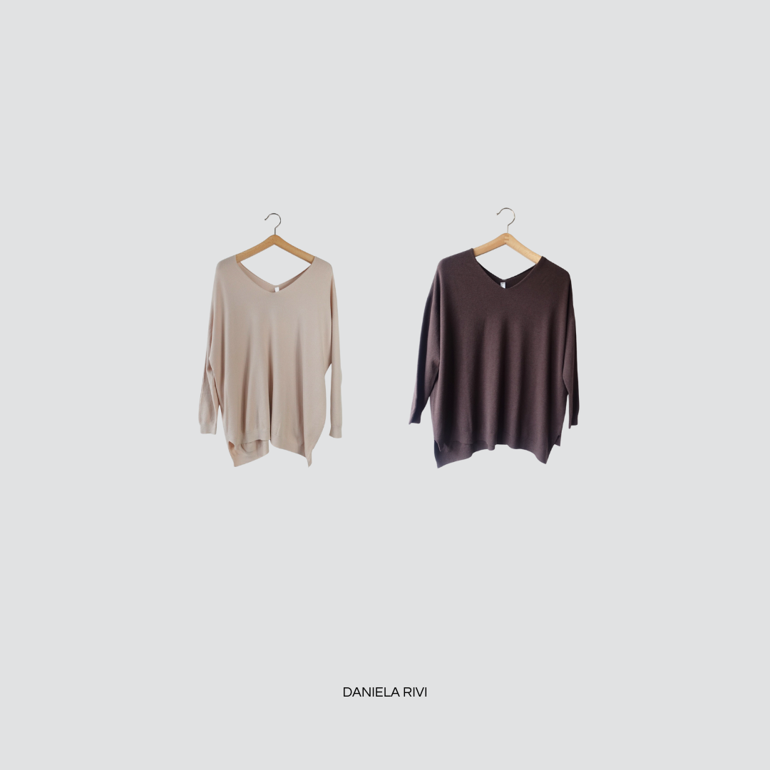 Tensione in maglia over doppio scollo V spacchetti laterali 50% viscosa Art IRC195