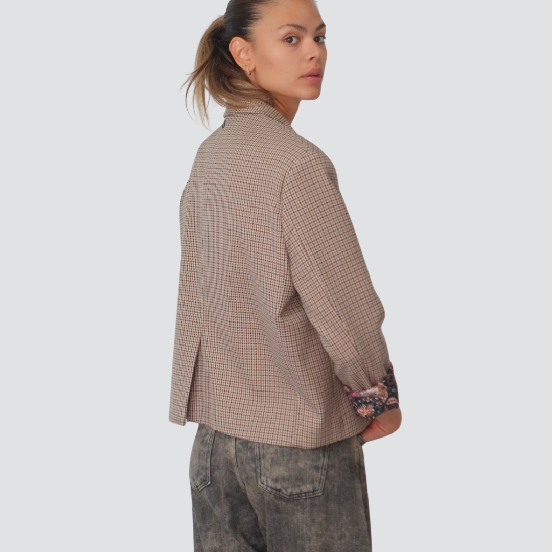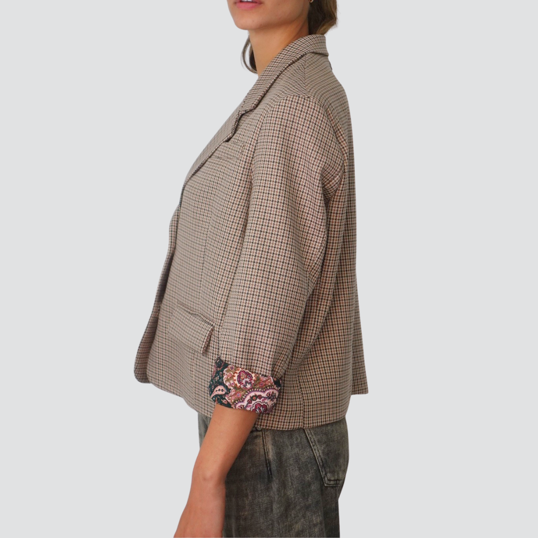 Dixie giacca over pied de poule foderata con stampa Art JDEZYDS