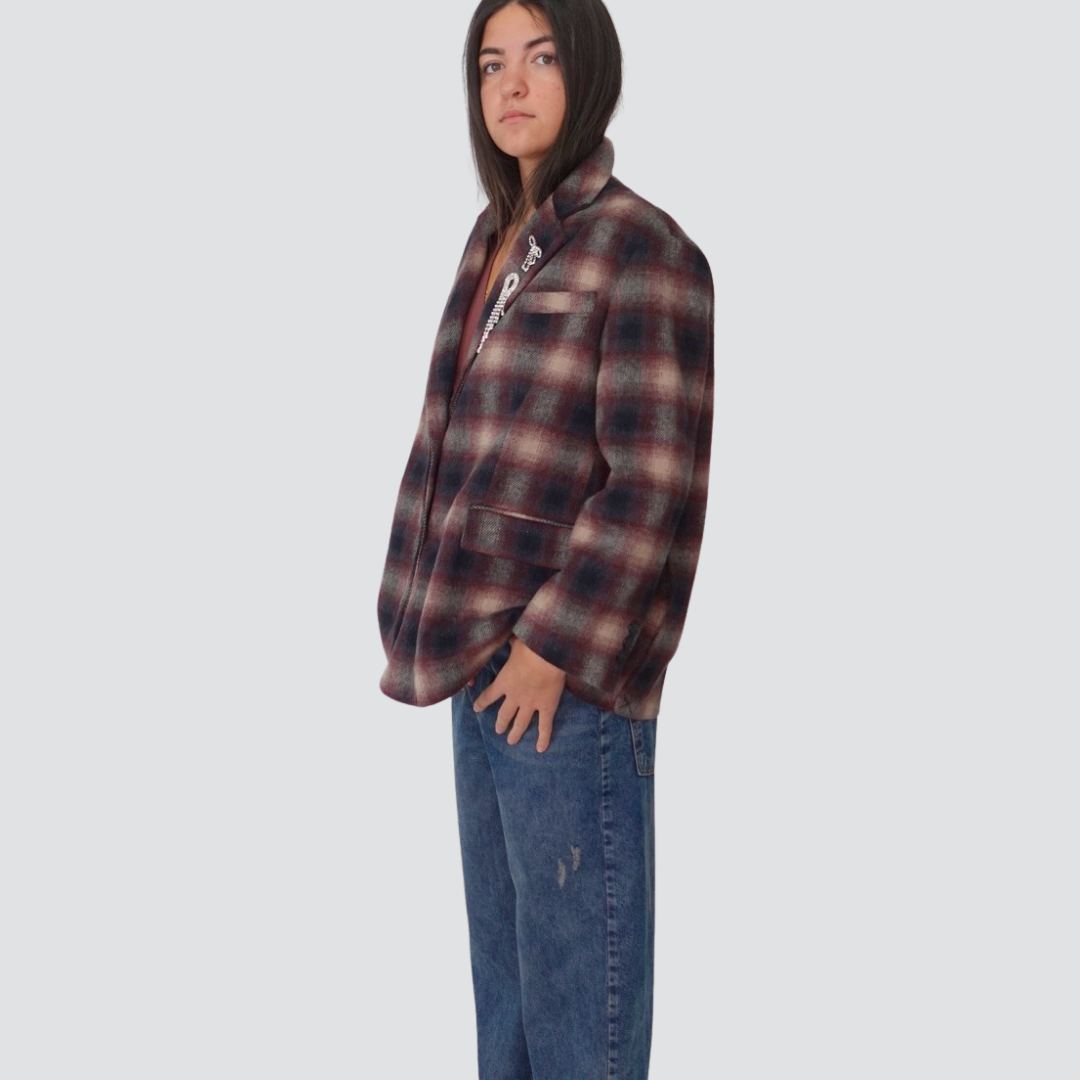 Dixie giacca over scozzese foderata con spilla strass 40% cotone Art JCO4YMRP