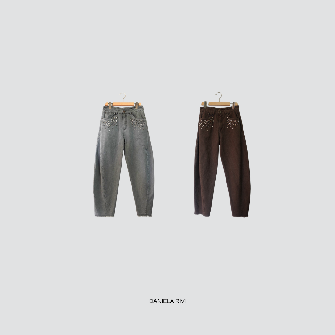 Tensione in jeans balloon con applicazione 100% cotone Art W25P217