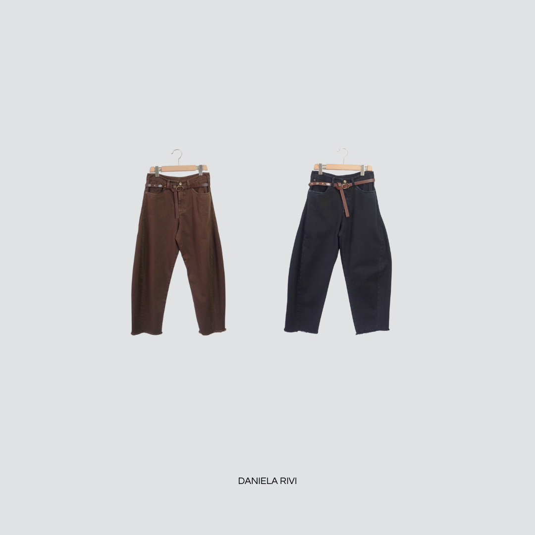 Tensione in pantalone balloon con cintura fondo sfrangiato 100% cotone Art W25P371