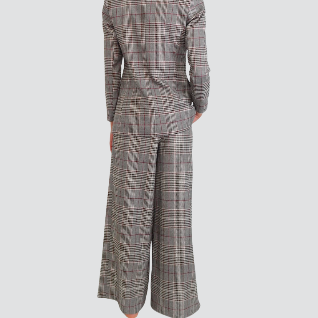 Tensione in pantalone palazzo pinces scozzese bottone oro 34% viscosa Art 26P1130