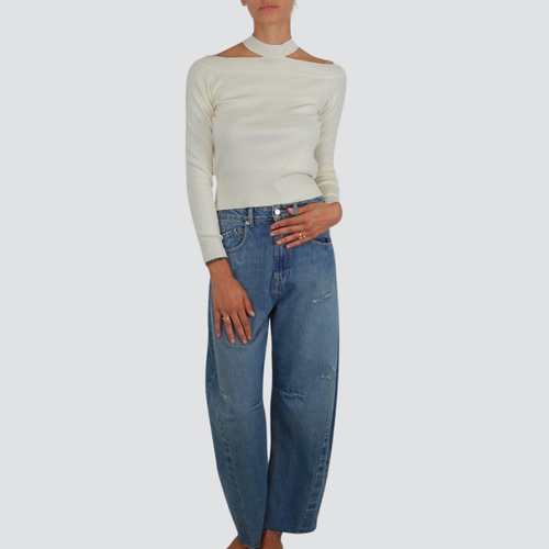 Haveone jeans Barbara con rotture dirty denim 100% cotone Art PFA-P044