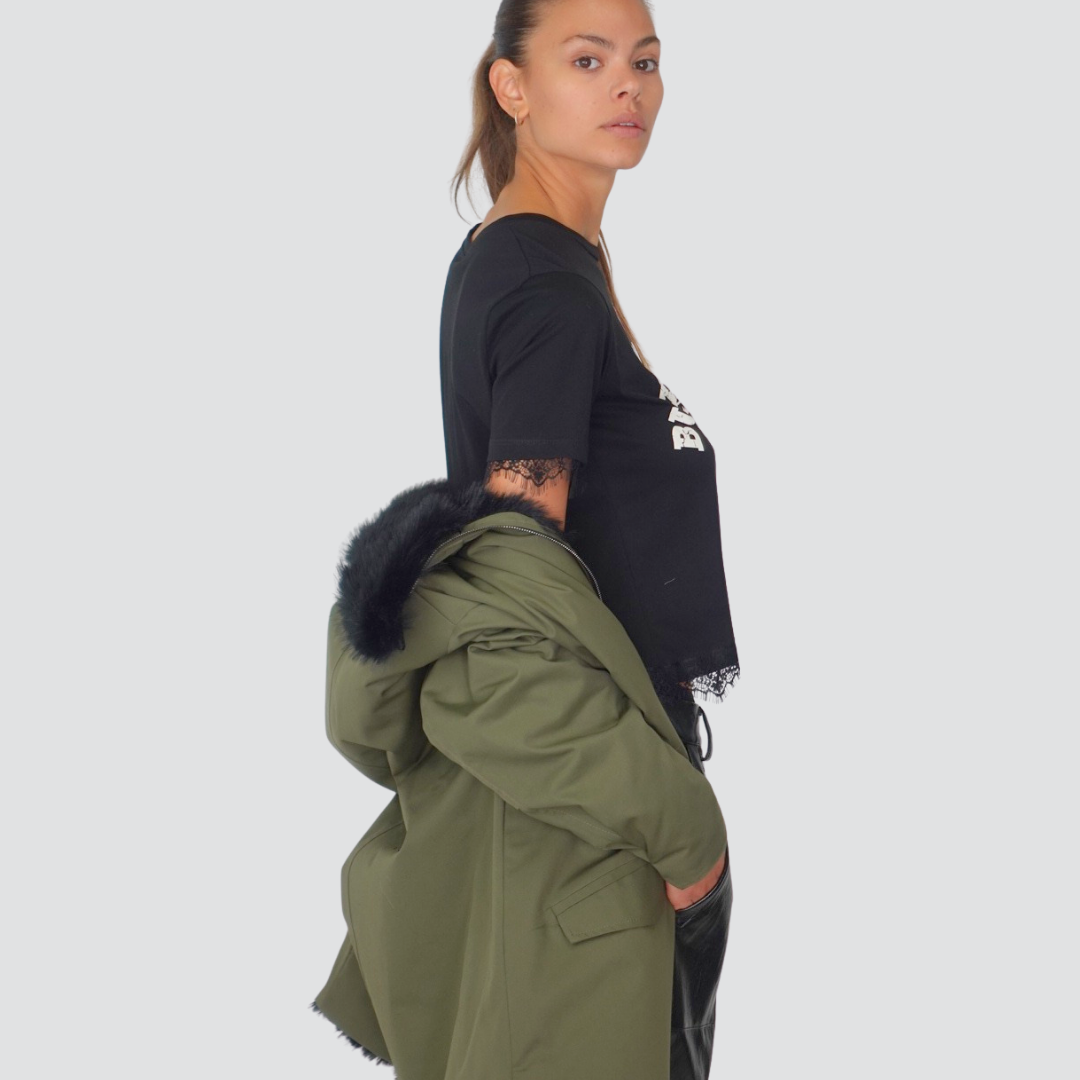 Tensione in t-shirt over con stampa e pizzo 100% cotone Art 37825