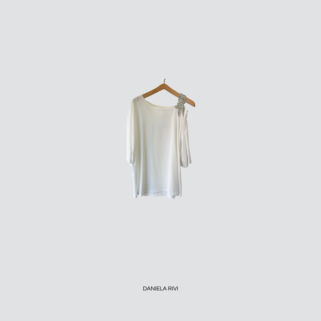 Tensione in t-shirt over cut out con applicazione 100% cotone Art 37289