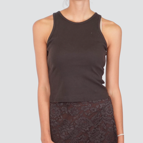 Haveone top ciniglia moro asimmetrico con pizzo Art RMA-P049