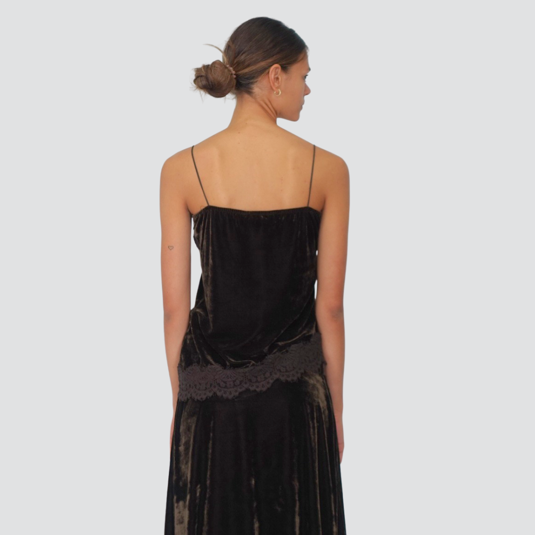 Haveone top ciniglia moro asimmetrico con pizzo Art RMA-P049