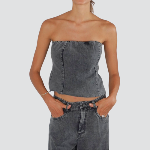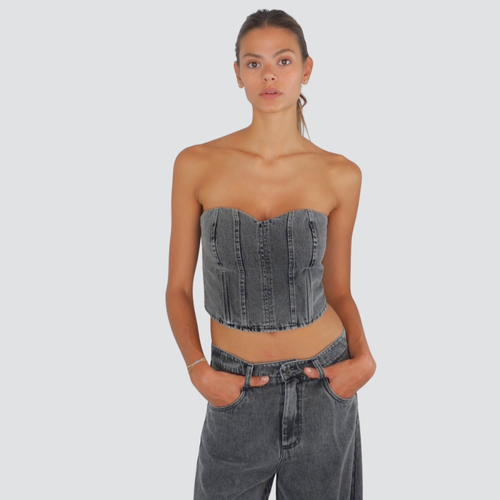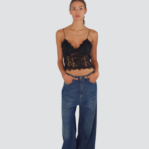 Tensione in top crop pizzo moro spallino regolabile zip laterale Art FW250039
