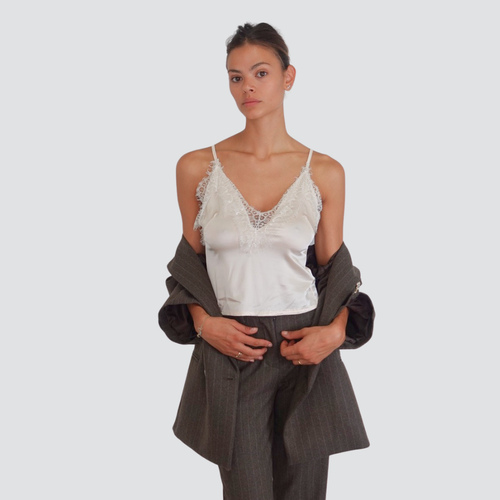 Tensione in top satin scollatura pizzo spallino regolabile Art FW250031