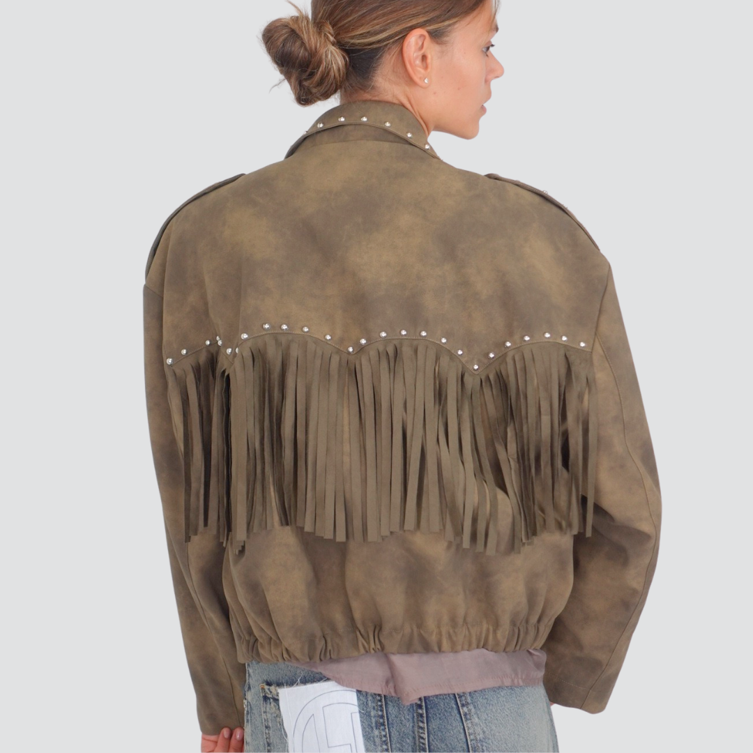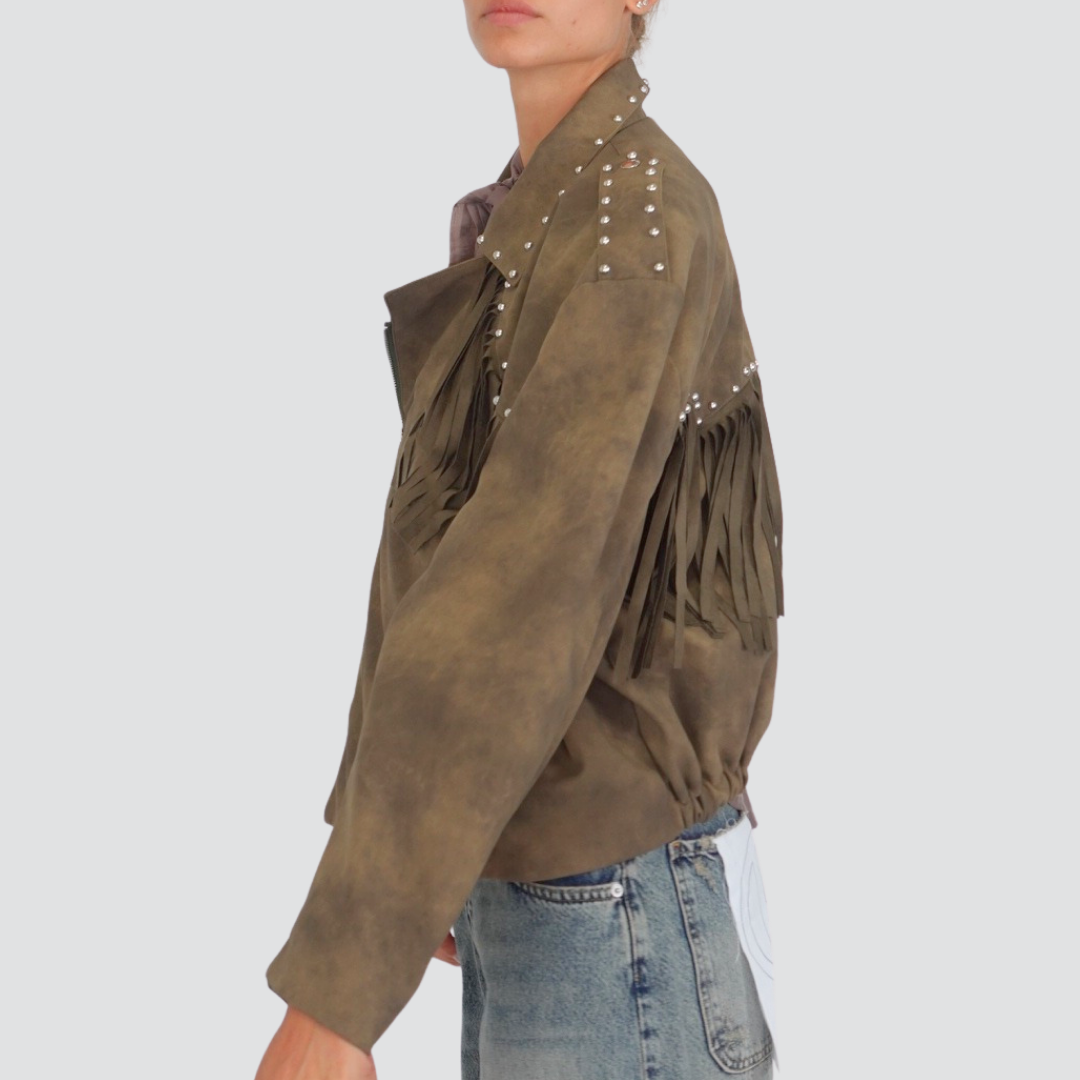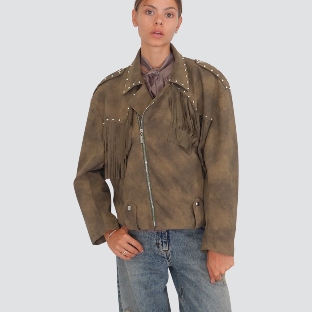 Haveone chiodo over borchie e frange ecopelle foderato Art KVS-P068